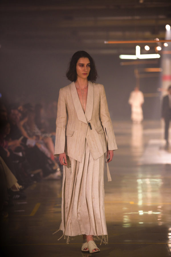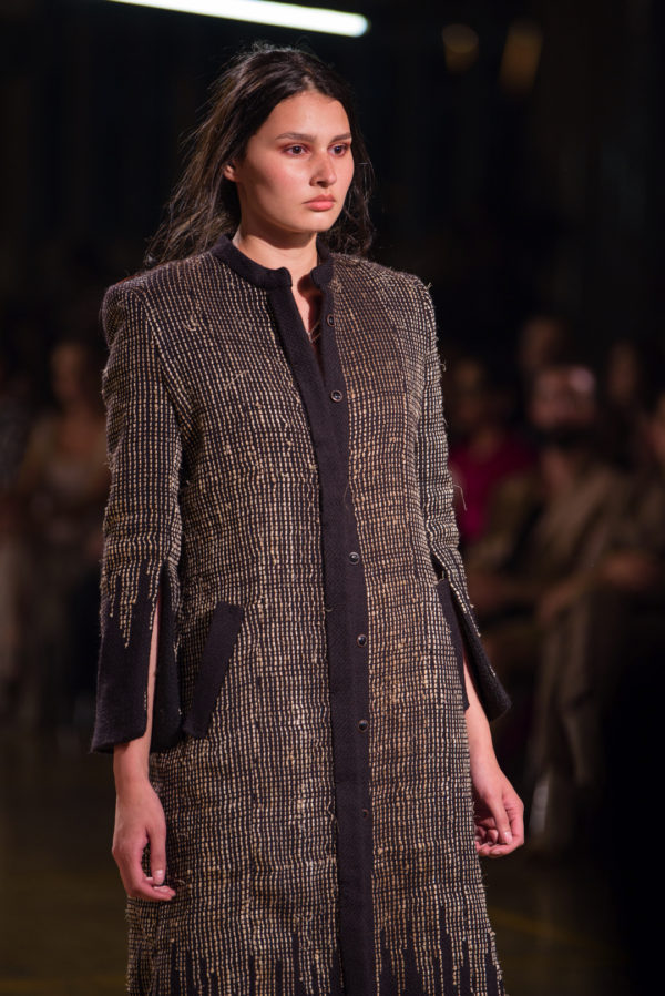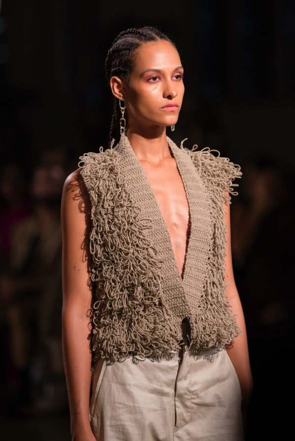 Through this collection, A New Cross emphasized textiles as great containers of memory, where each handcrafted piece, instead of focusing on the ethnic or what we usually associate with craftsmanship, reflected a more hostile zeitgeist resulting from an increasingly ephemeral, global, and constantly moving world.