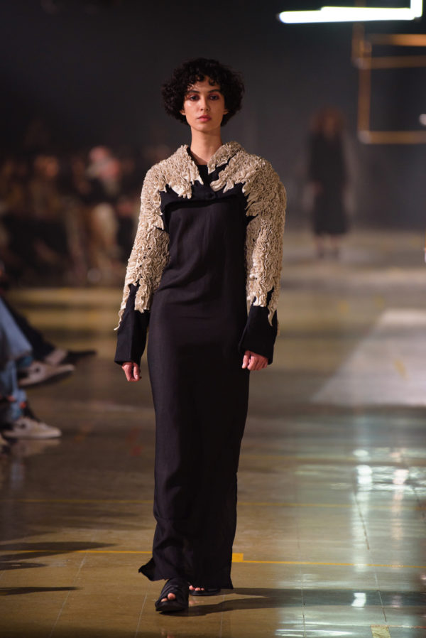 The show was intended as a sensory proposal that allowed the audience to immerse themselves in a unique experience. Showing an intimate part of the brand, the show offered a journey through the creative mind of Rivero, revealing how a collection is produced amid a global crisis.