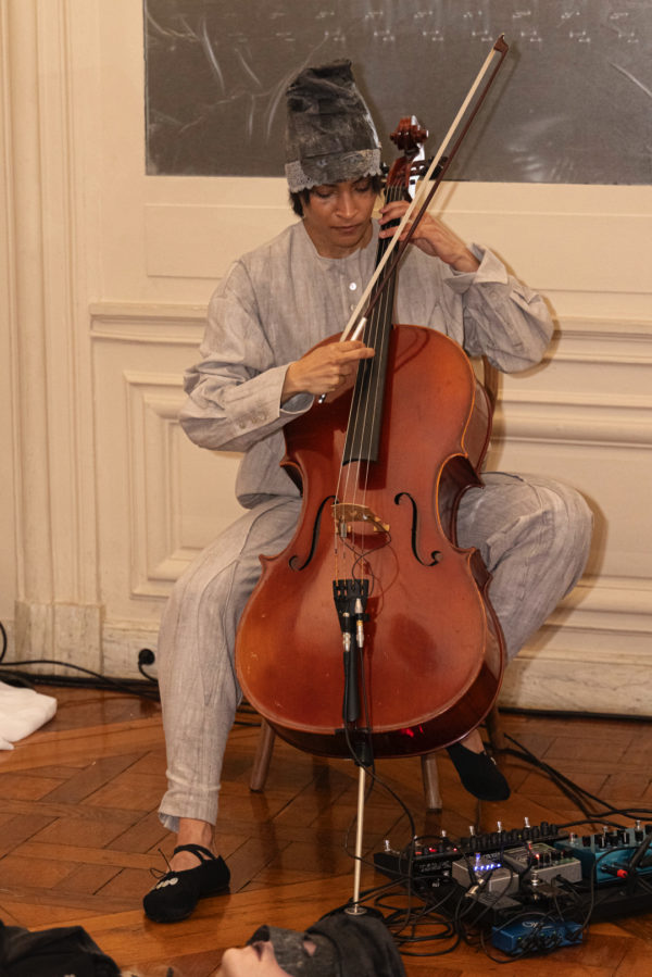 The presentation was accompanied by a live performance from Ouri, whose cello compositions reinterpreted classical structures through contemporary synthesis. The soundscape introduced an additional emotional layer, reinforcing the atmosphere of reflection and gradual repair that shaped the collection.