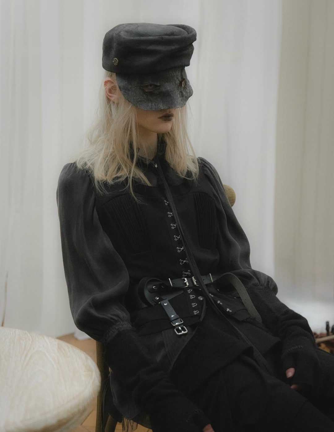 Part of the inspiration draws from the themes of war and existential dislocation explored in the 1965 Polish film “Ashes”. The narrative reflects on identity after conflict, the disintegration of belief, and the collapse of a stable sense of self. Within the collection, these ideas translated into garments that appear to exist in a moment of reconstruction, where meaning is not fully restored but actively being rebuilt.