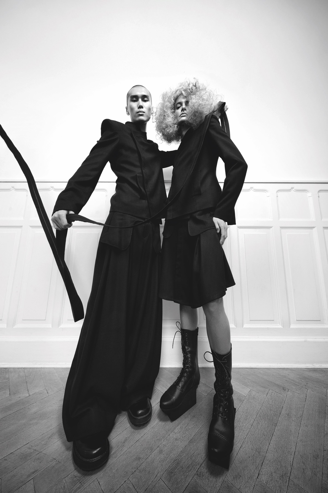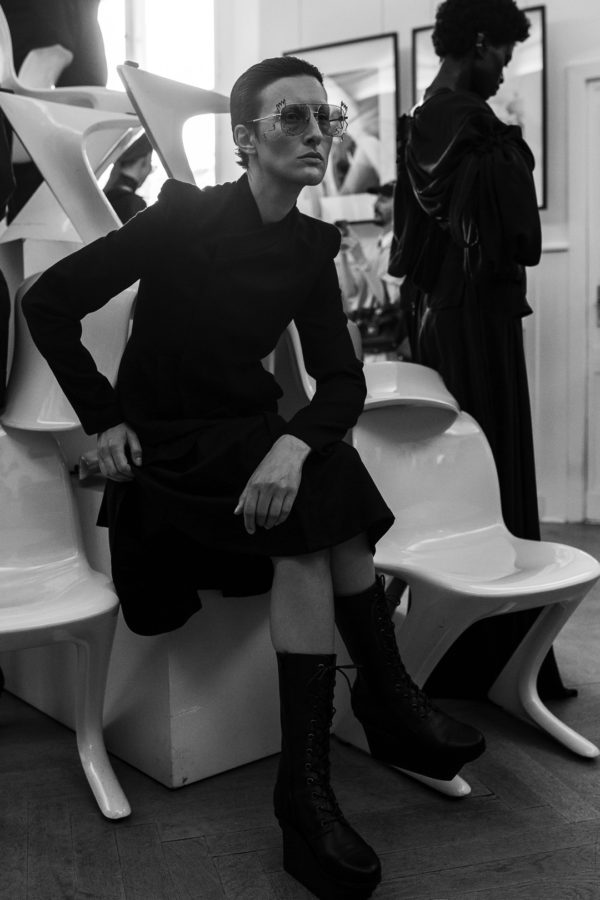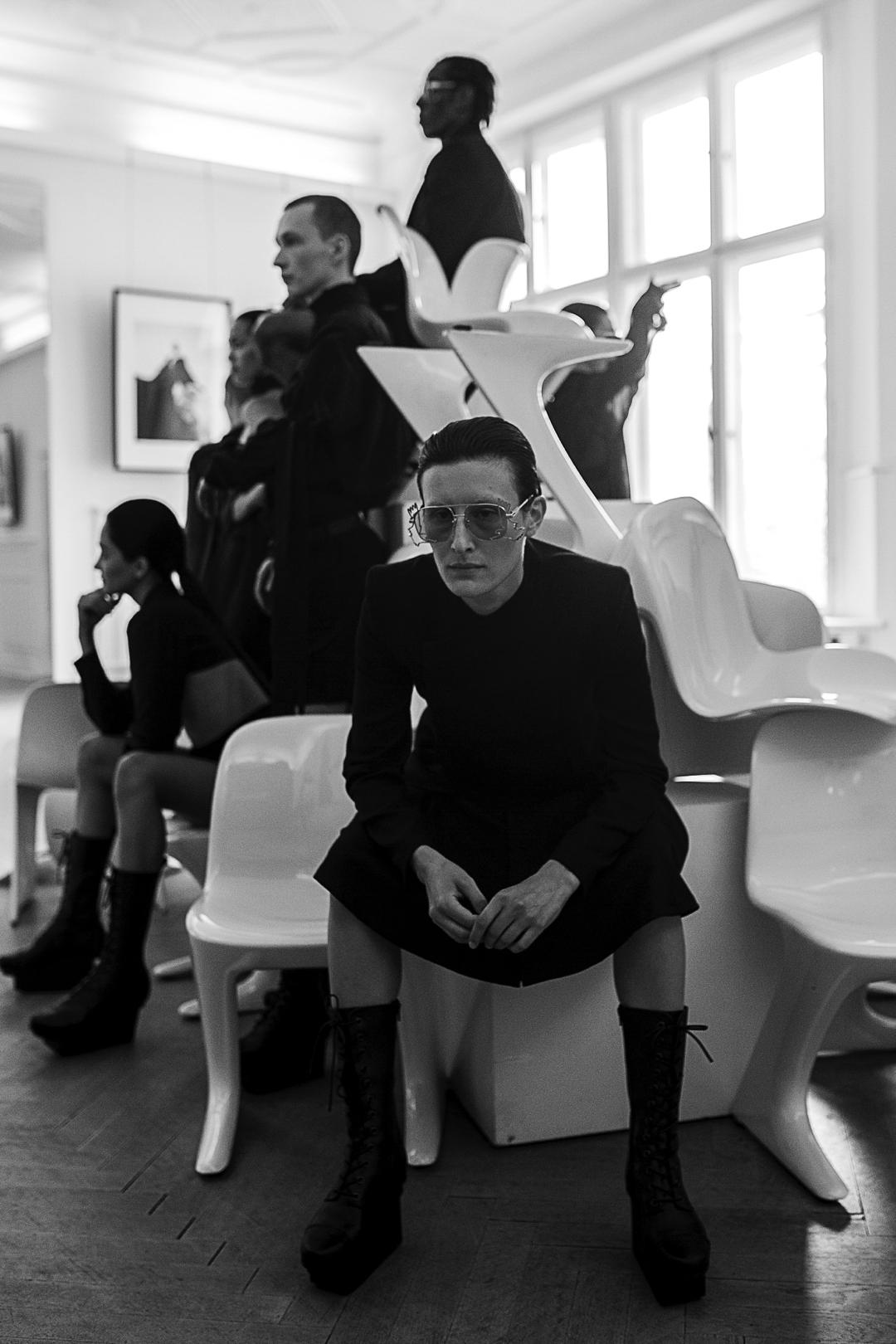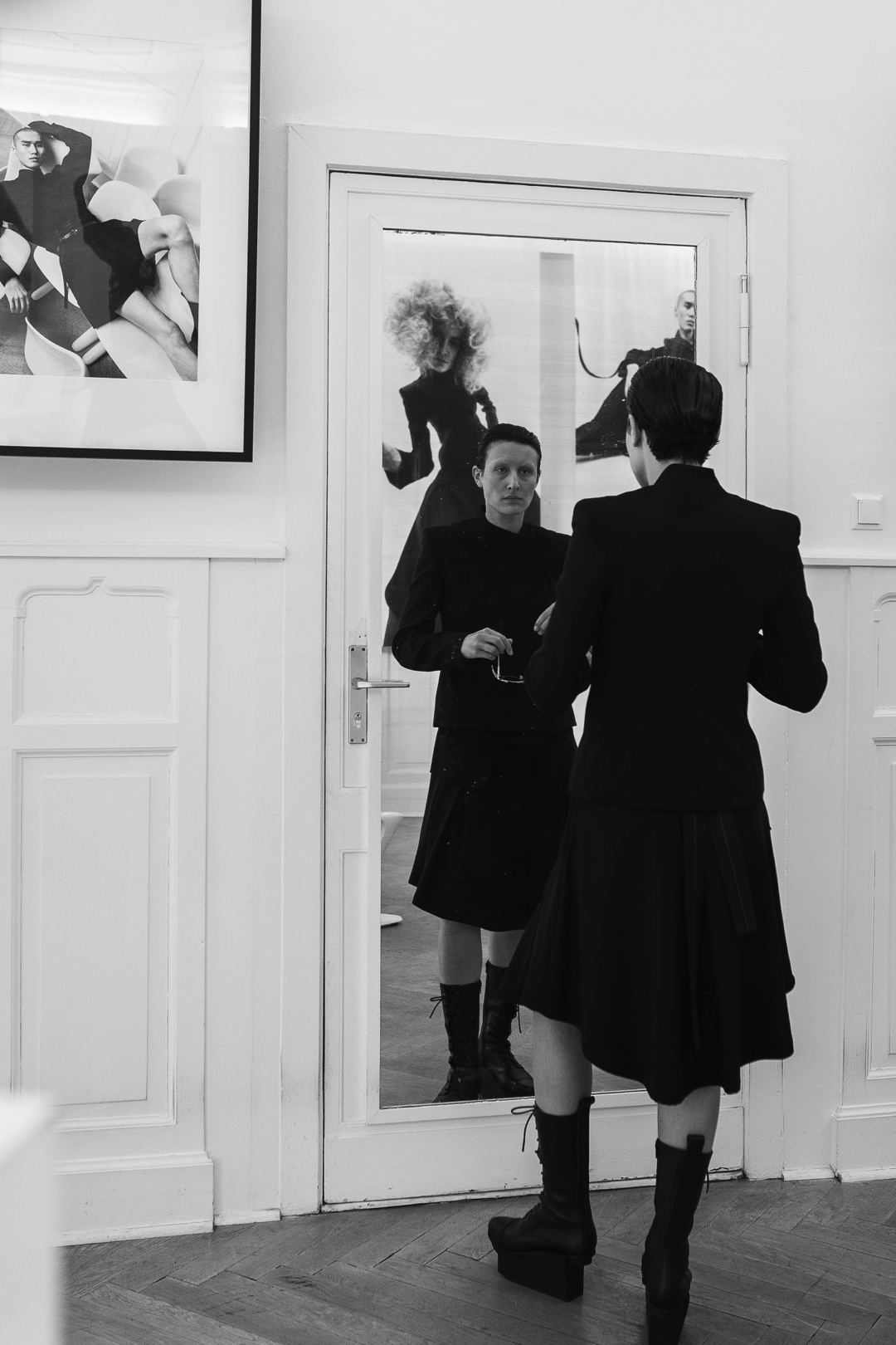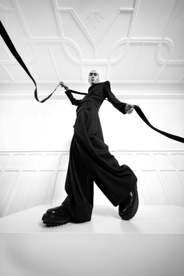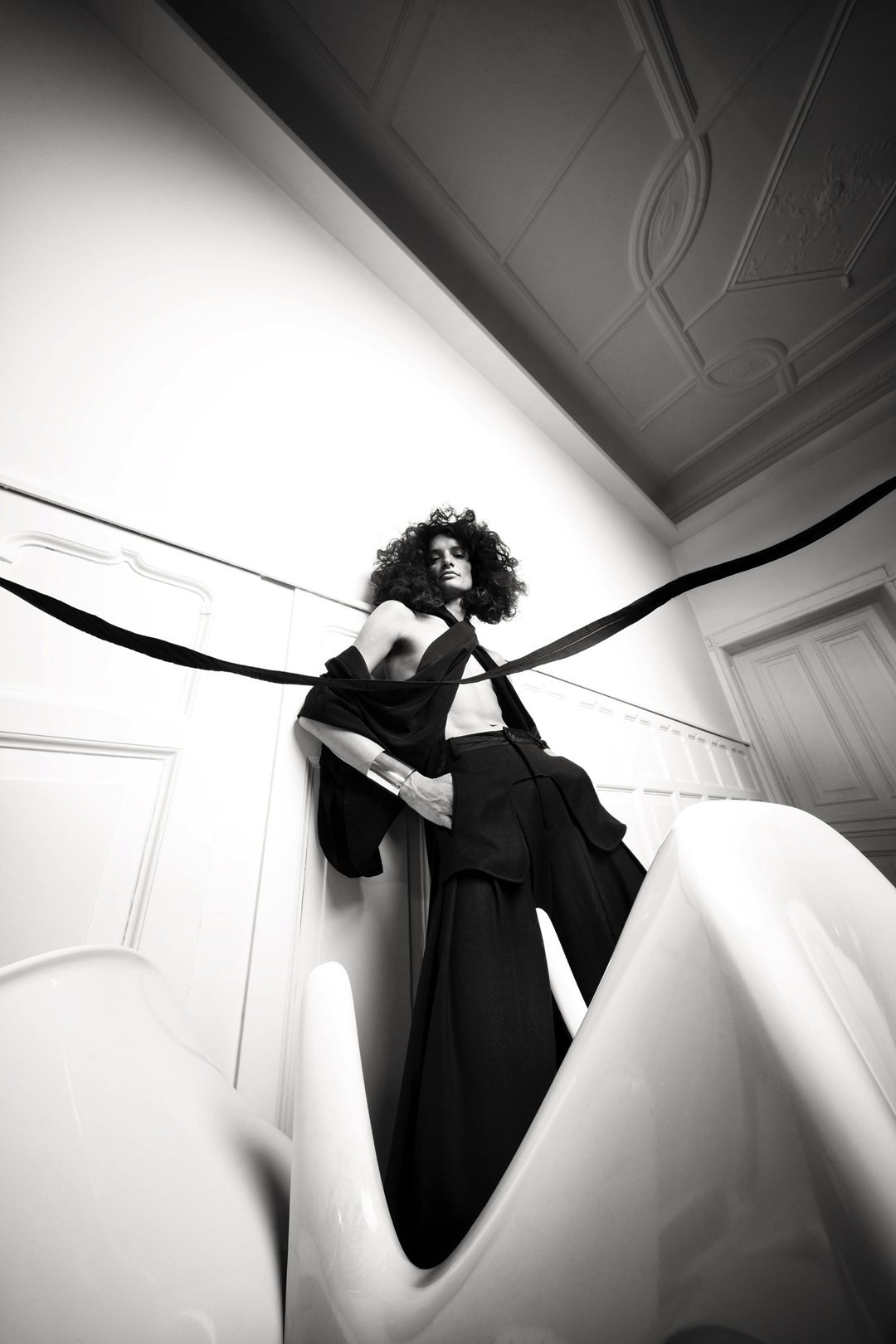 Esther Perbandt is a Berlin-born designer whose work merges fashion, performance, and post-feminist thought into a singular avant-garde language. Raised in a politically engaged household during the 1970s and ’80s, she was shaped by values of equality, individuality, and imagination. These values continue to define her interdisciplinary practice today. From an early age, she cultivated her vision without compromise, eventually refining it across Paris and Moscow before returning to Berlin to establish her eponymous label. Her designs defy binary norms, reworking classical menswear codes into non-gendered silhouettes that emphasize autonomy, presence, and timeless elegance.