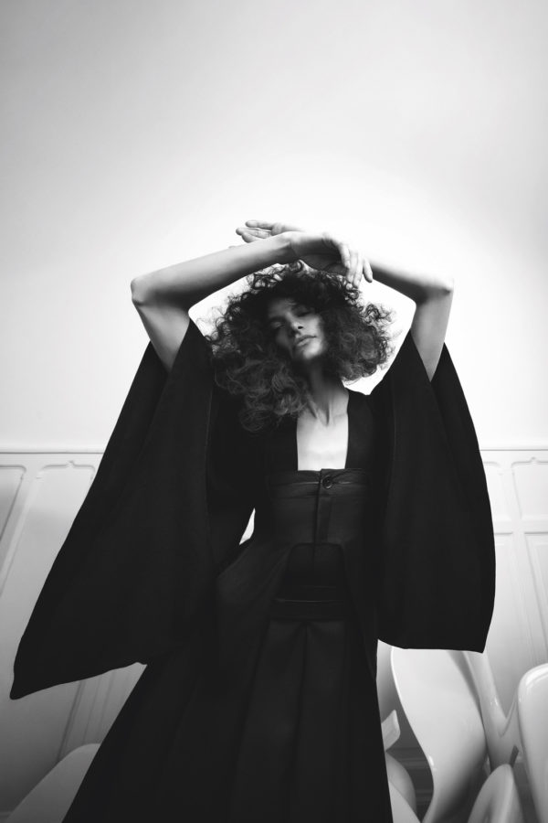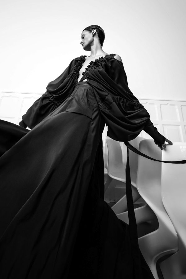 The collection suggests an evolution in Perbandt’s approach. From expressive showpieces to elegant, wearable avant-garde. “Black Tailored Summer” is still unmistakably hers, anchored in her signature all-black palette and structured silhouettes. But it moves toward wearability without abandoning edge. “Precise, refined, and in my signature color: black,” she writes. The garments balance presence with control: silk skirts, shirts, tailored jackets, dresses and asymetric coats that whisper rather than shout.