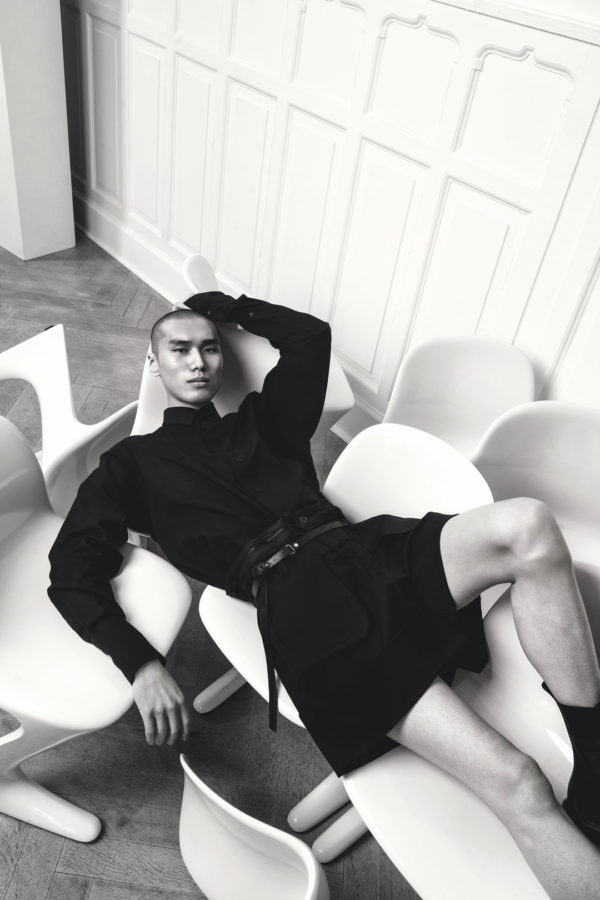 The installation also served as the launchpad for two new collaborations. The first, a stark black boot developed with Trippen, featured the label’s iconic 10 centimeter Geisha sole. Architectural and grounded, it echoed the installation’s sculptural ethos. The second, a pair of sunglasses designed with Kreuzbergkinder, came with interchangeable lenses and a custom case. Together, they extended the language of “Black Tailored Summer” into object and accessory, where form followed function with clarity and intent.