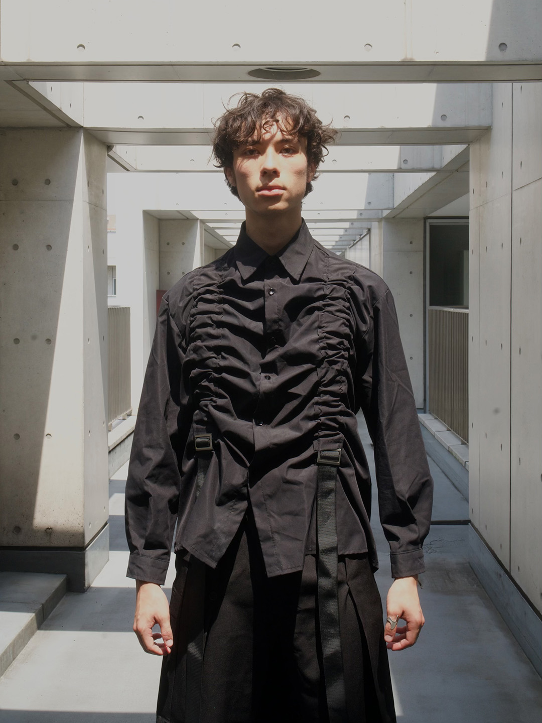 Beyond the mainline, the brand has expanded into diffusion labels. YAMI adapts its avant-garde aesthetic into ready-to-wear, while SHIRT reinvents the workwear button-up as a site of experimentation in pleating, dyeing, and deconstruction. Both extend Hikari no Yami’s commitment to sustainability while broadening its accessibility.