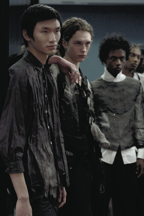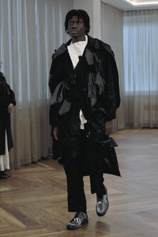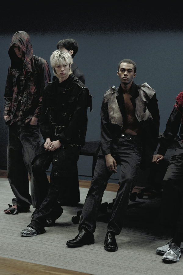 The silhouettes are inspired by Japanese design sensibilities and American streetwear, including wide cut denim, as well as patchwork, blending high fashion with low and deconstructing the traditional notion of what clothes can be.