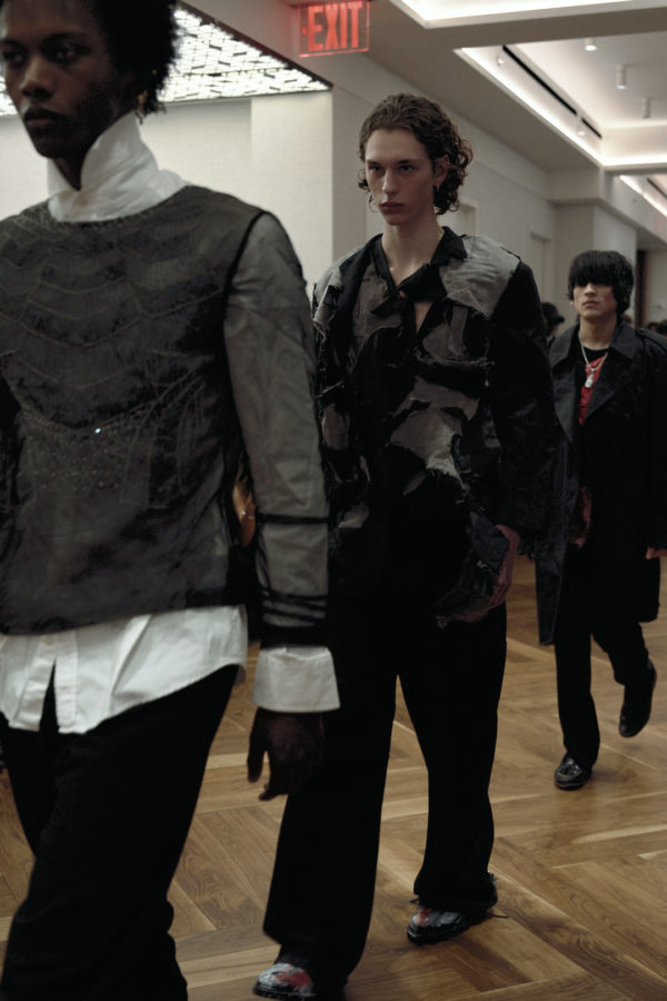 Presented during New York Fashion Week, Chapter 10 is inspired by the anime and novel Shiki by Fuyumi Ono. Through philosophical reconstruction, this chapter confronts the moment where survival becomes rebellion. SHIKI explores the collision between humanity and an invasive force, a metaphor for modern fashion itself: predatory, cyclical, and sustained by consumption rather than creation. Here, the plague is not external, but systemic. The revenants are no longer monsters, but mirrors, figures condemned simply for existing outside accepted norms. They are SHIKI.