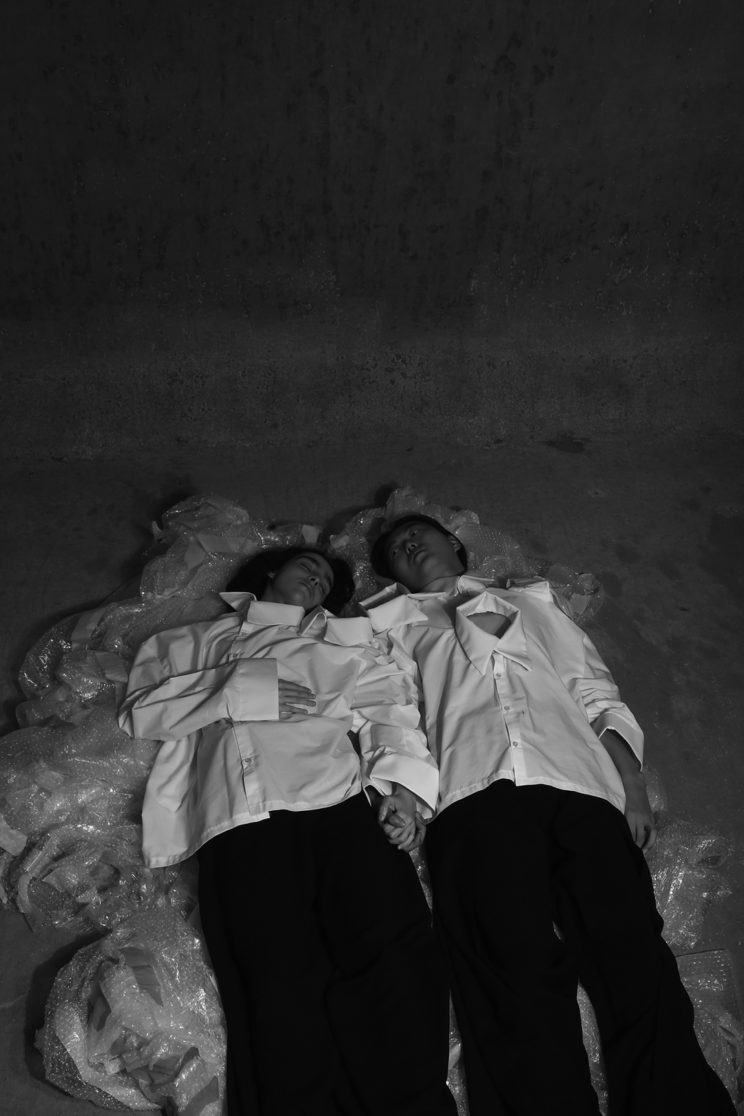 The white phase is constructed from cotton and soft twill. These lighter fabrics represent fragility and exposure, suggesting the early stages of intimacy where the self is unguarded. In contrast, the black phase introduces heavier materials like wool, structured twill, and poplin. These pieces reflect grief and resilience, acting as a kind of emotional armor. The garments in this phase are more rigid and protective, signaling a shift toward internal reconstruction.