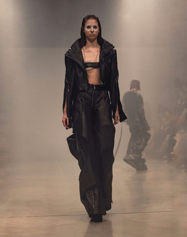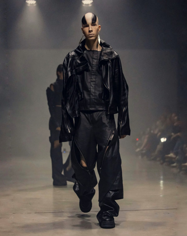 Under the creative direction of Vlad Vraciu, Lunar Laboratories takes inspiration from his previous career in aerospace engineering, translating the precise lines, shapes, and layers of aircraft dynamics into ready-to-wear pieces. The brand’s distinctive approach was on full display at MBR, with garments that fuse structural volumes, textural experiments, and deconstructivist elements, all while maintaining a distinct architectural construction. The result was a bold, forward-looking statement on the future of fashion, where functionality and design intersect seamlessly.