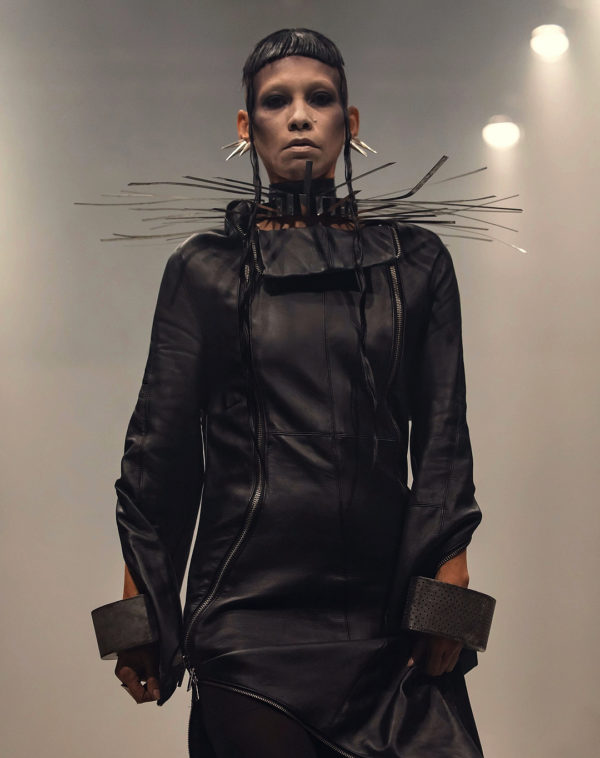 Lunar Laboratories, the avant-garde Romanian brand founded in Bucharest, delivered a powerful presentation at Moldovan Brands Runway 2024 with its latest collection, “Observer”. Known for pushing boundaries with its alternative aesthetic and commitment to experimentation, the brand presented pieces that embody a dark, futuristic vision of fashion. This collection, an evolution of their aerospace-inspired design, showcased Lunar Laboratories’ unique fusion of art, functionality, and innovation.