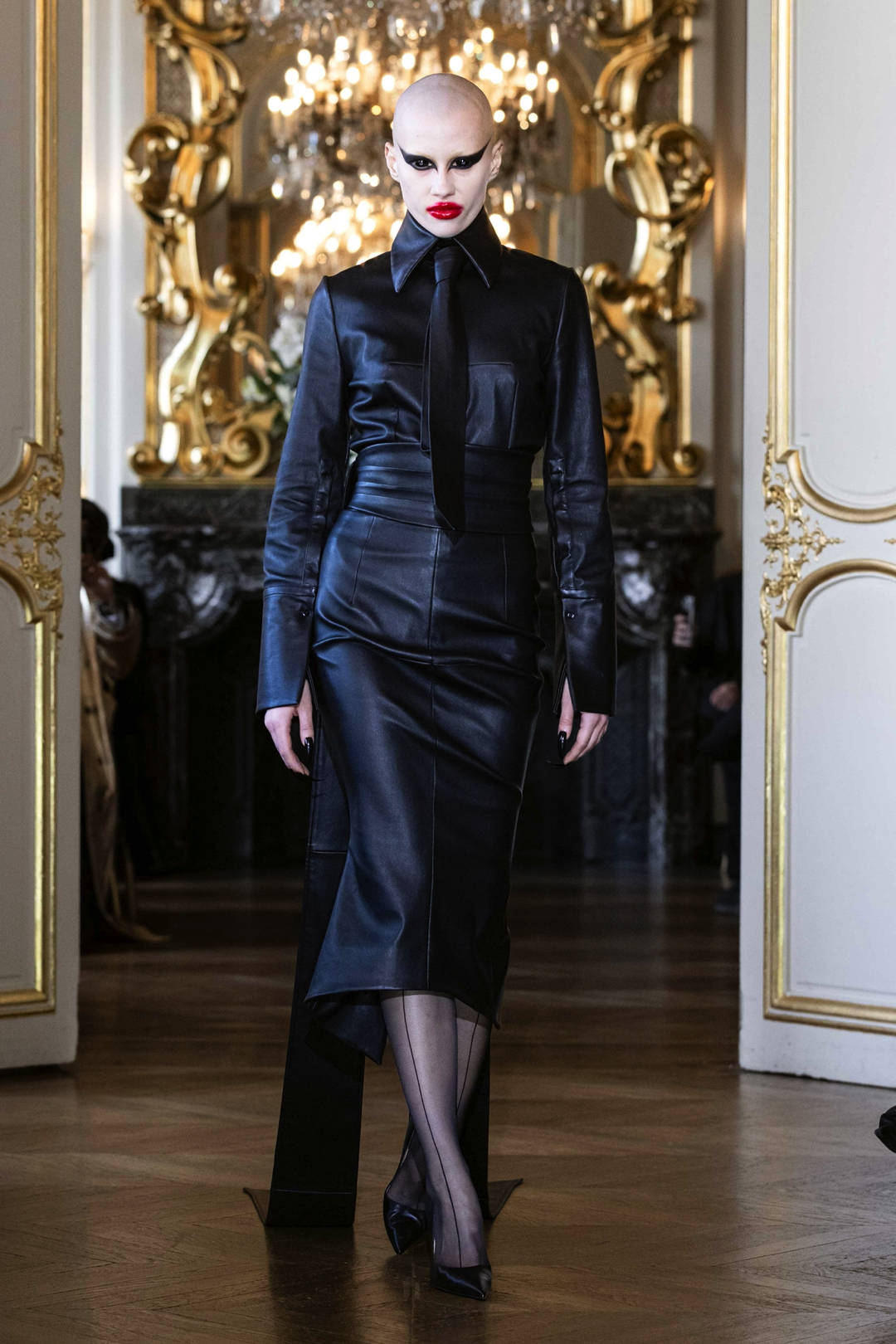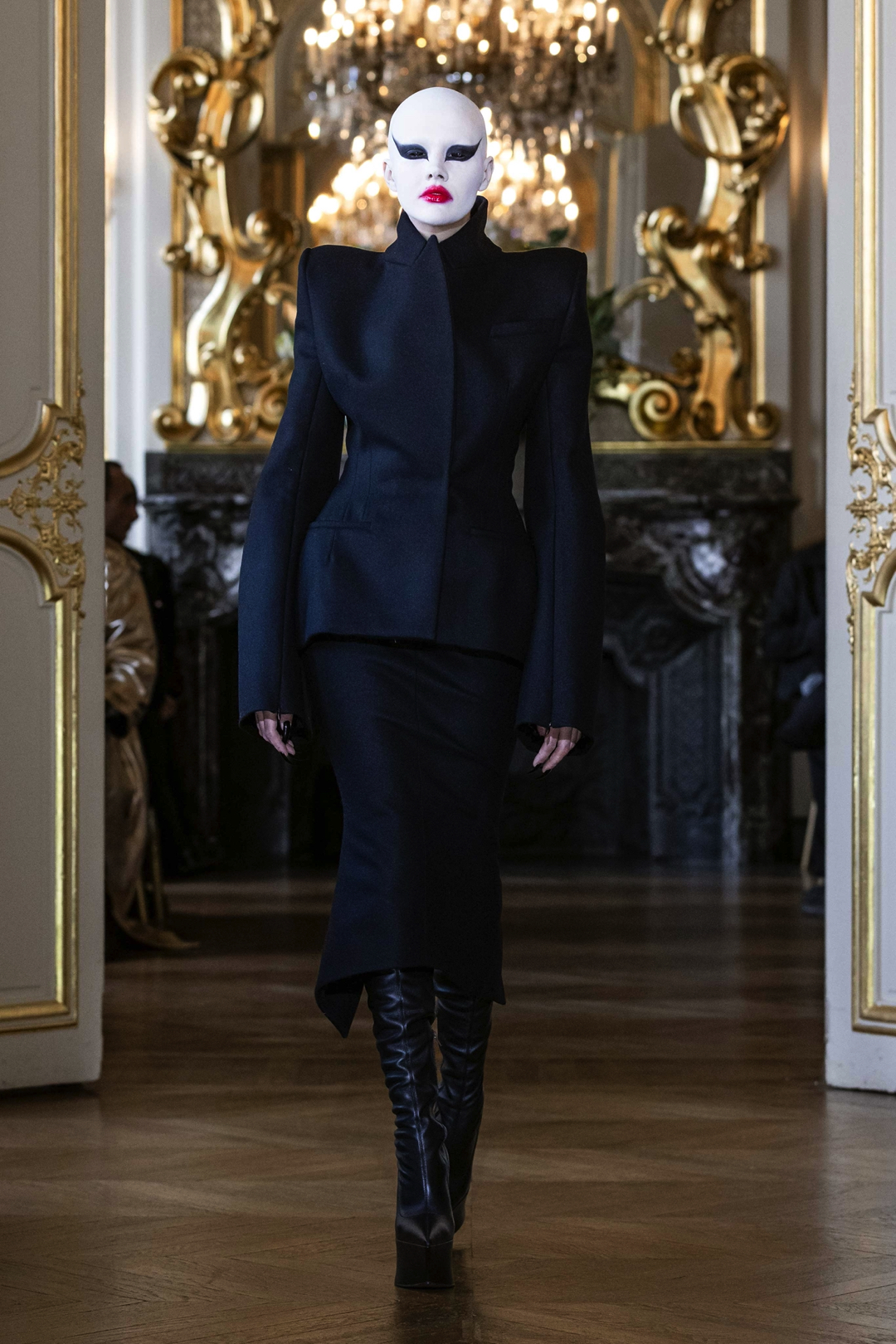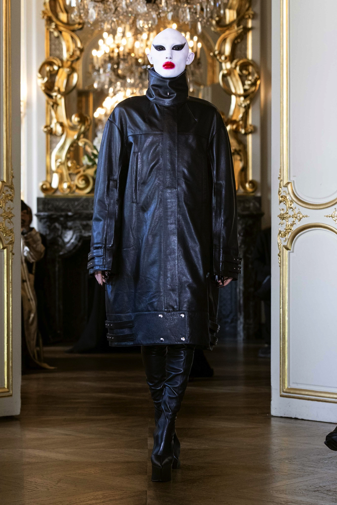 Throughout the show, the models, wearing the brand’s signature facial prosthetics and unsettling contact lenses, became figures of transmutation, embodying a vision of beauty that exists beyond the immediate present. The casting, diverse and deliberate, reflected a community of misfits and visionaries, an audience as much as a statement. “A lot of people from the cast are exactly the same as us,” Bhaskaran noted. “We’re a small community, but there are many of us who are interested in this post-human aesthetic.”