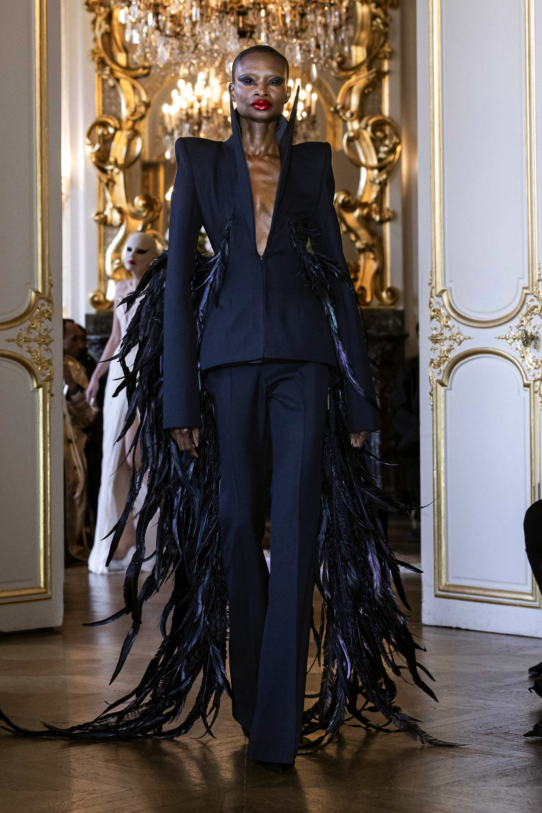 In the gilded salons of Hôtel Le Marois, a different kind of beauty took shape. Shadows moved against mirrored walls, elongated figures stepping forward with a precision that felt both ancient and alien. It was here, in this fractured reverie of the 19th century, that Matières Fécales unveiled “The Other”, a collection that blurred the boundaries between fashion, identity, and something less definable, something beyond the human.
