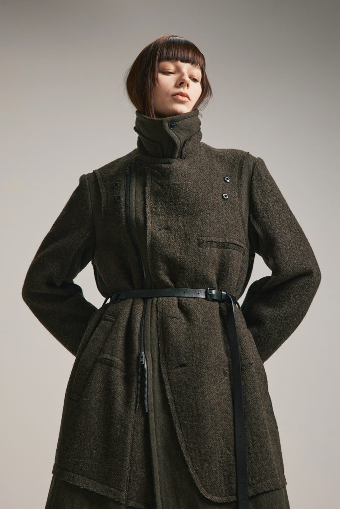 Nude: Masahiko Maruyama has become famous for its seemingly simple design and distinctive silhouette. The brand name comes from the concept of ripping off all decoration, so that simplicity of design is clear. Ornamentation is kept at a minimum, and the focus is on relaxed tailoring and superior fabrications.