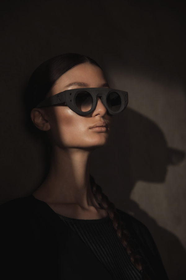 The frames are produced using Selective Laser Sintering, a high-precision technology that sculpts polyamide into durable yet lightweight forms. This material, known for its flexibility and resilience, allows Octo to experiment with bold silhouettes while maintaining comfort through hollow interiors. Every piece is finished by hand, undergoing a meticulous process of polishing and hydration that softens the surface without diluting its presence.