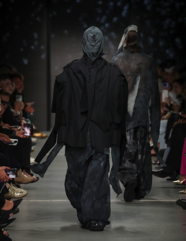 Outerwear was multilayered, with the top layer artistically “falling apart,” like cabbage leaves.