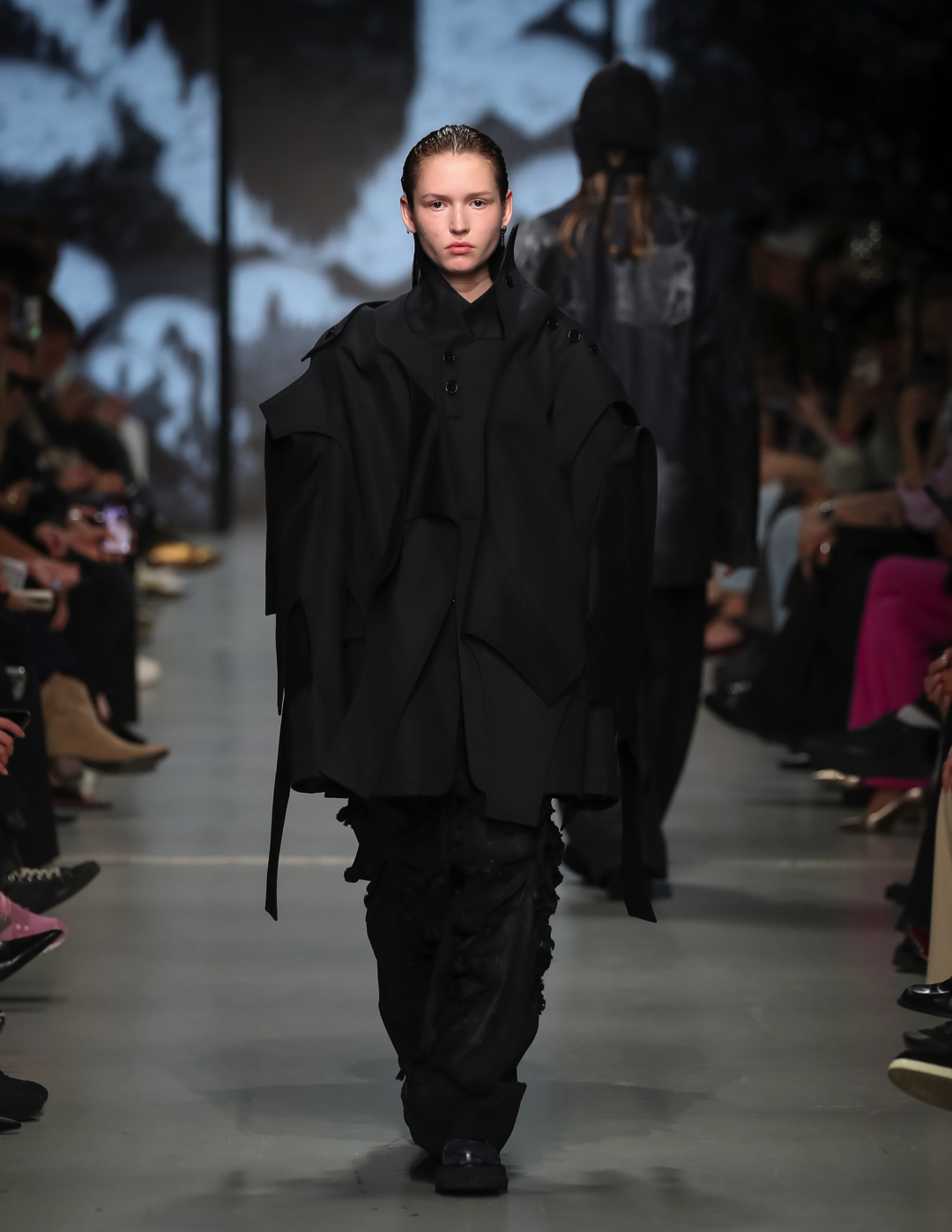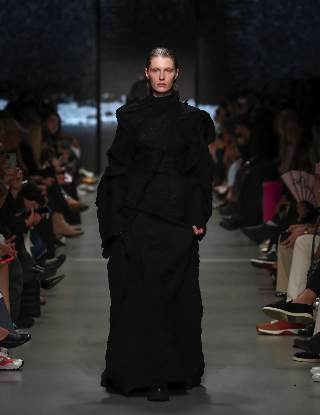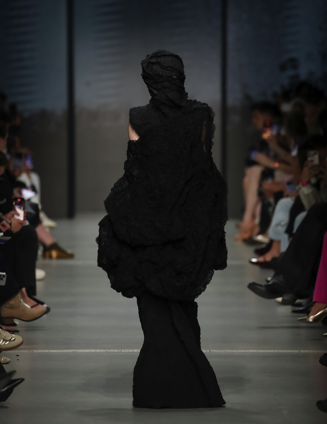 On September 1 2025, as part of Moscow Fashion Week, Pirosmani Studio presented its new collection, “Raw Sculpture”, in the underground parking space of Zarayadye. The collection was filled with complex forms, black, and an “artfulness” that carried a powerful message.