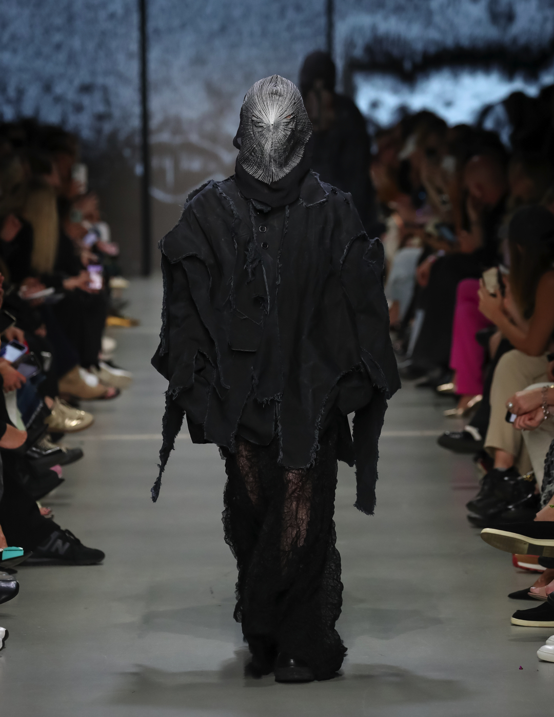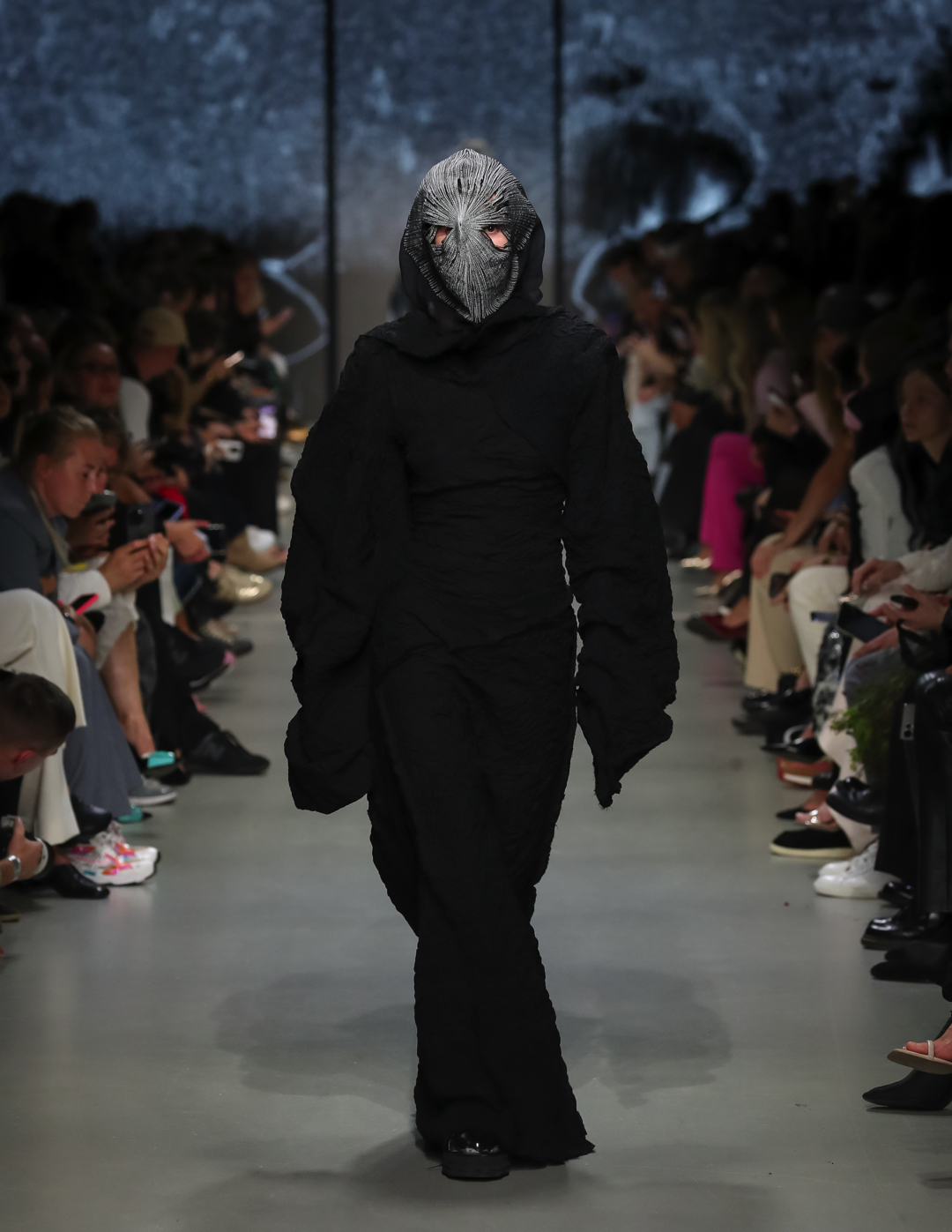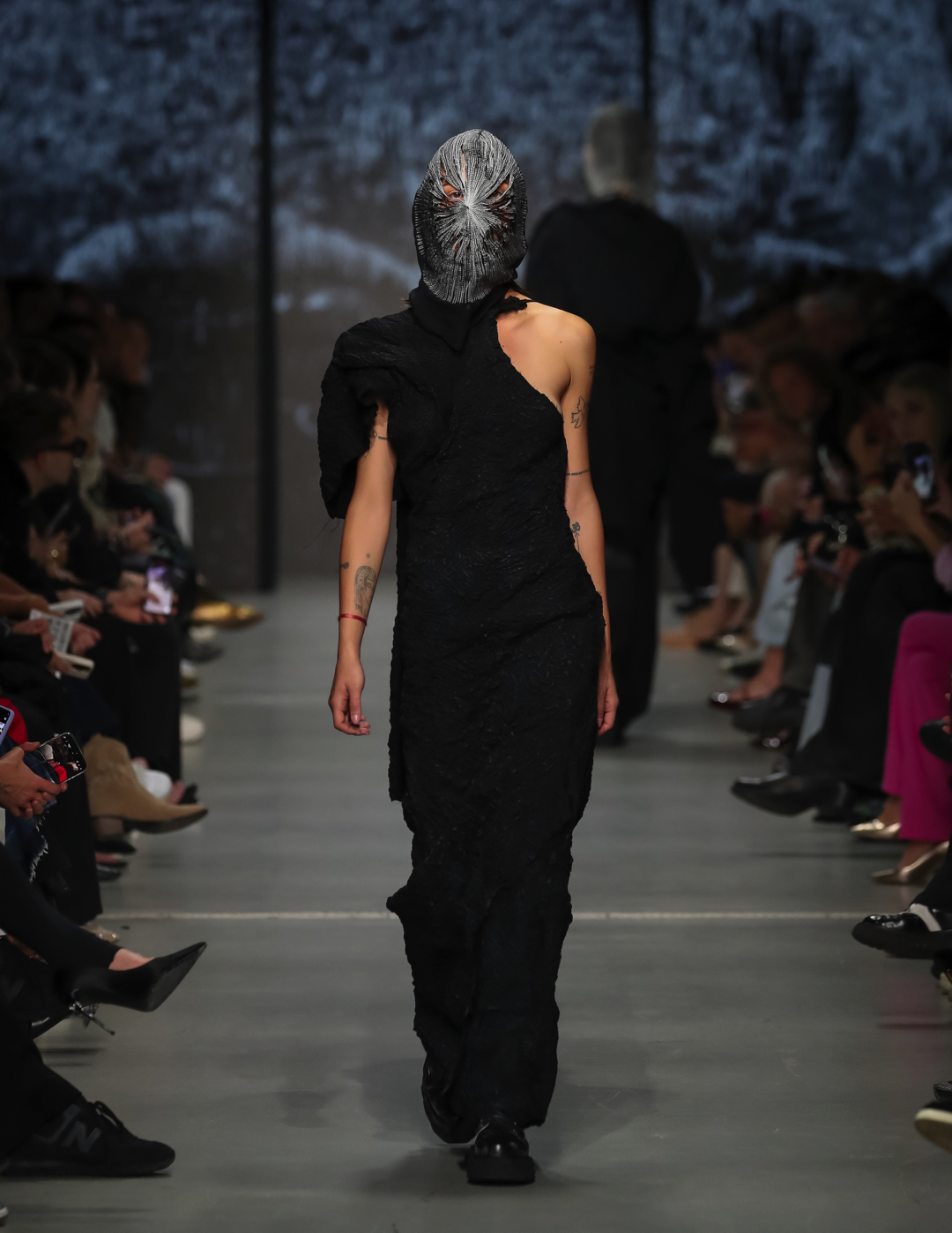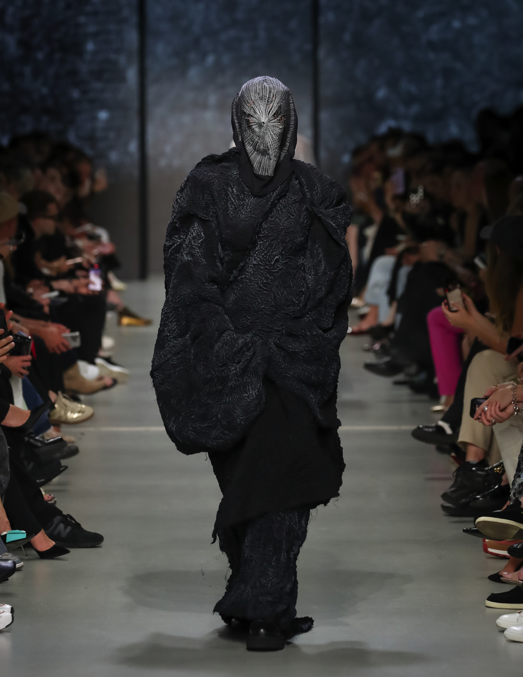 On September 1 2025, as part of Moscow Fashion Week, Pirosmani Studio presented its new collection, “Raw Sculpture”, in the underground parking space of Zarayadye. The collection was filled with complex forms, black, and an “artfulness” that carried a powerful message.