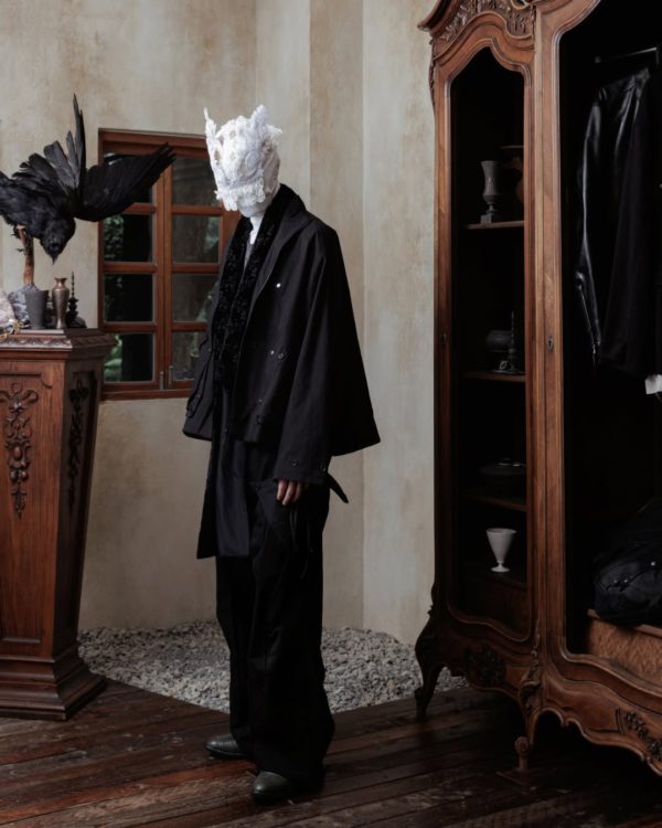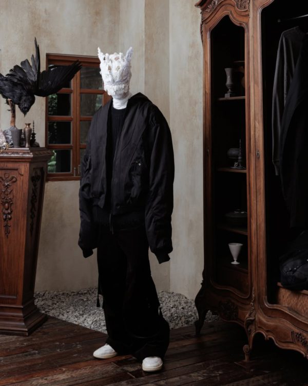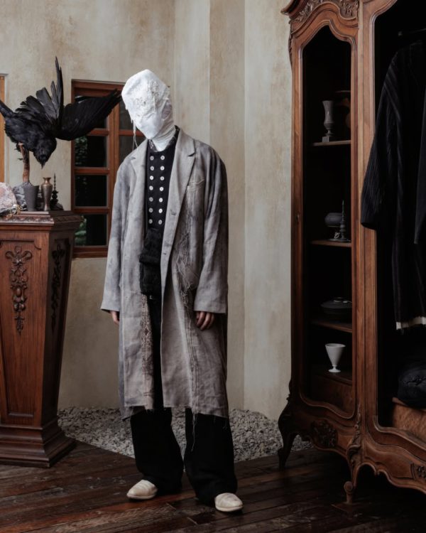 Professor.E has quickly become one of the most intriguing labels in the avant-garde space, an undercurrent of energy flowing out of Taiwan and into the broader fashion conversation. The brand’s Fall/Winter 2024 collection continues to build on the codes that made them unique: distressed textures, handmade construction, and the enigmatic presence of masked figures that serve less as characters and more as a visual ethos.