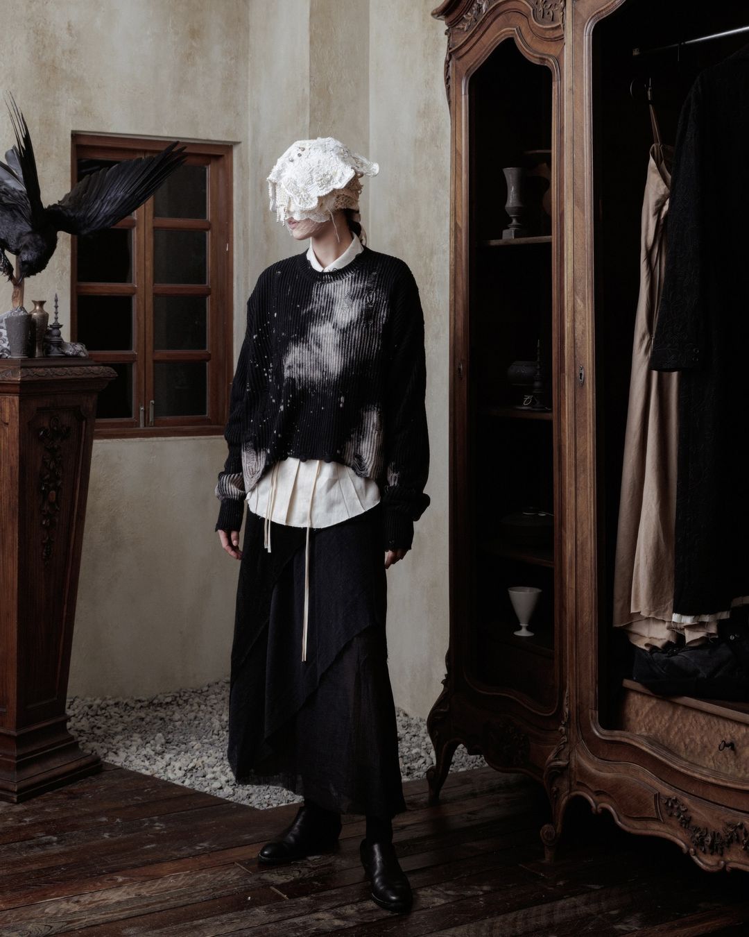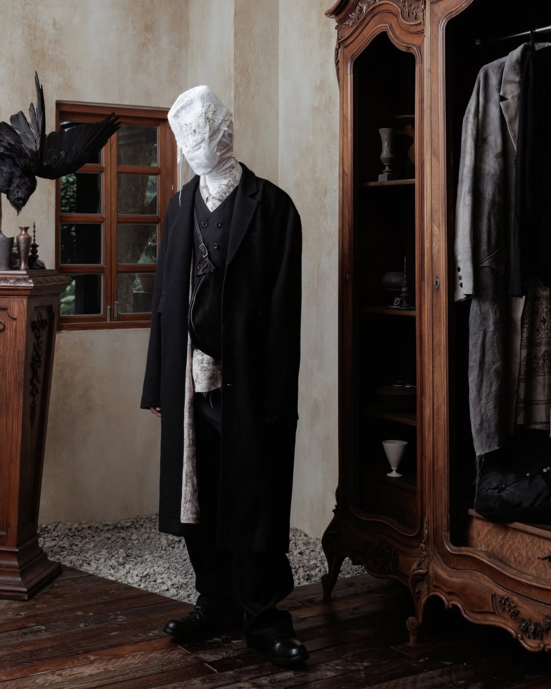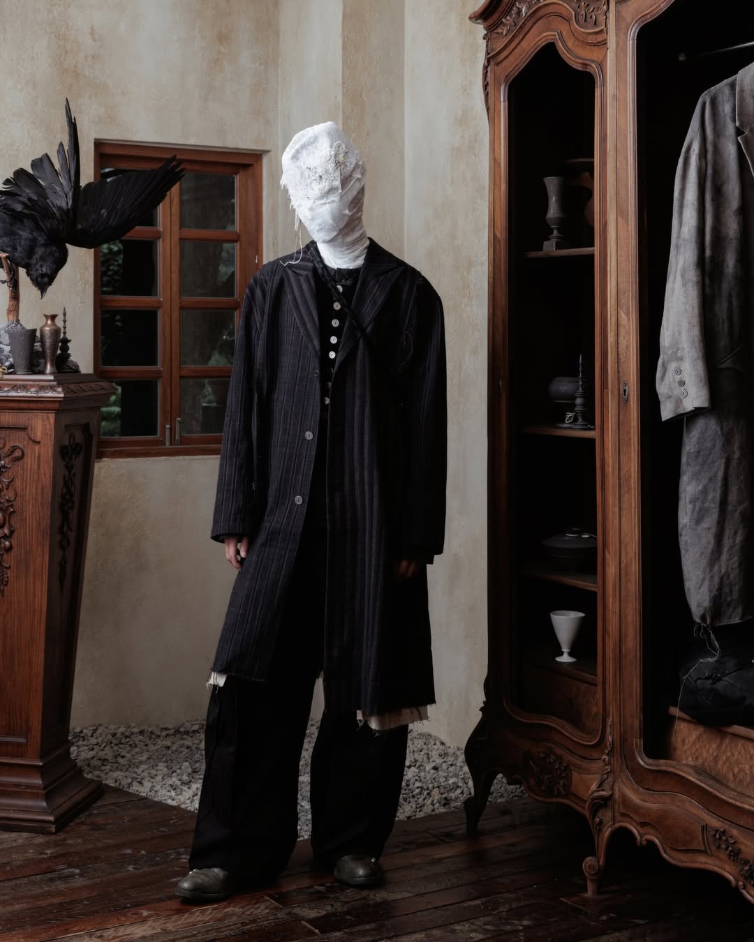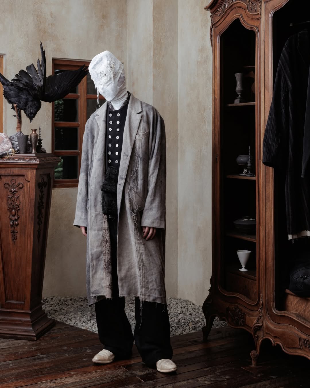 Professor.E has quickly become one of the most intriguing labels in the avant-garde space, an undercurrent of energy flowing out of Taiwan and into the broader fashion conversation. The brand’s Fall/Winter 2024 collection continues to build on the codes that made them unique: distressed textures, handmade construction, and the enigmatic presence of masked figures that serve less as characters and more as a visual ethos.