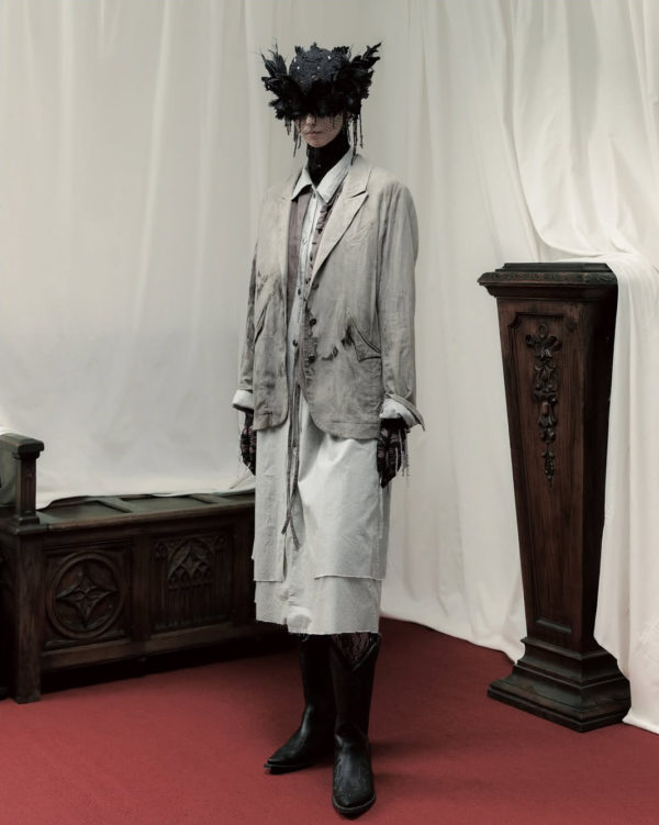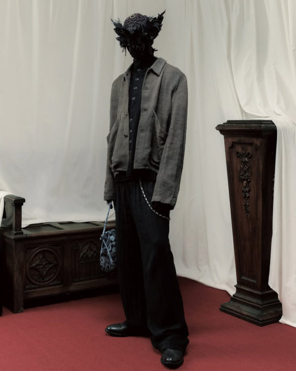 Based in Taiwan and steadily shaping a distinct space within the global avant-garde scene, Professor.E approaches Spring/Summer not with obvious seasonal tropes, but with a controlled release. The silhouettes feel looser, more elongated. Fabrics are lighter but still grounded, natural fibers, textured weaves, soft volumes that respond to the body and the climate without compromising on intention.