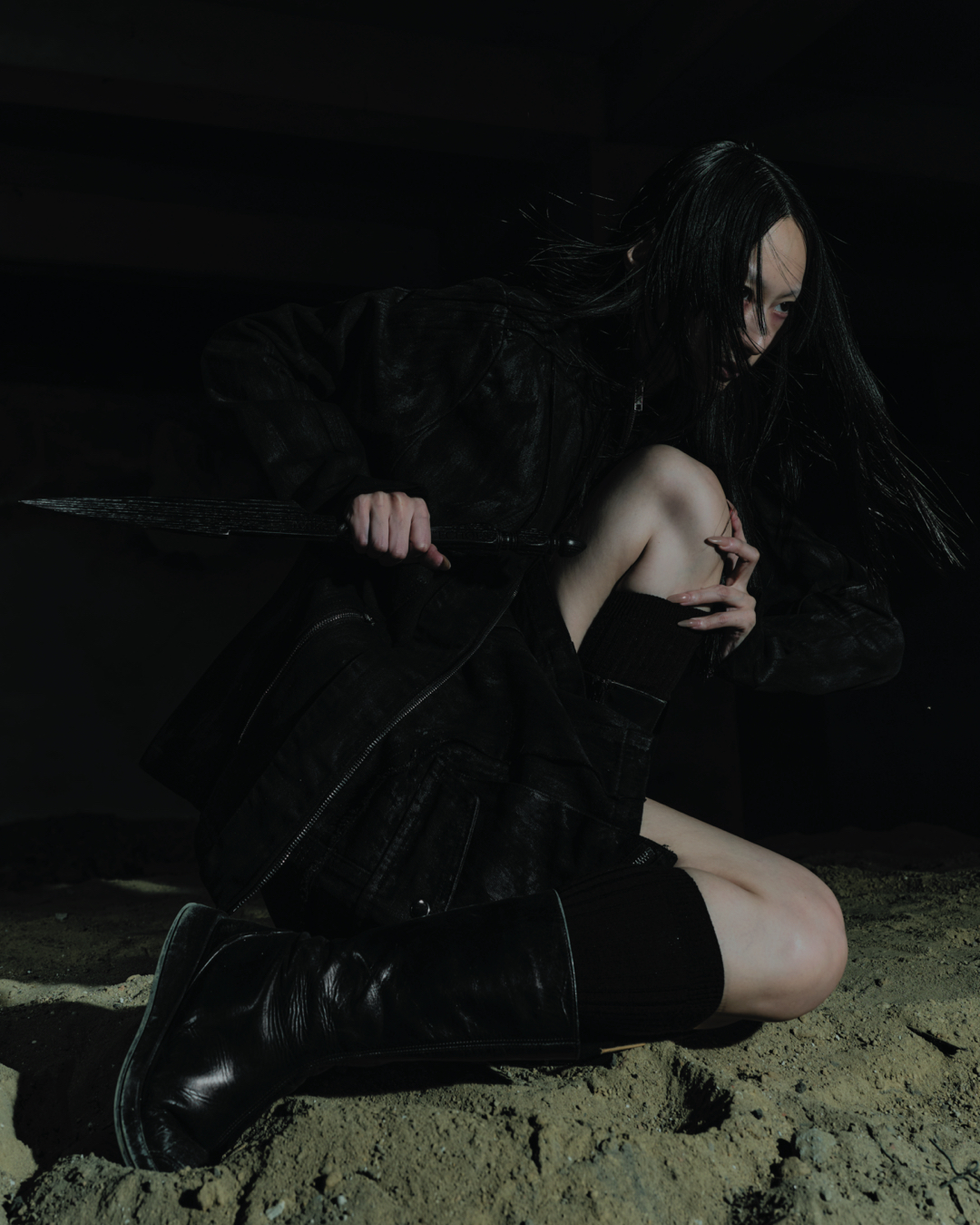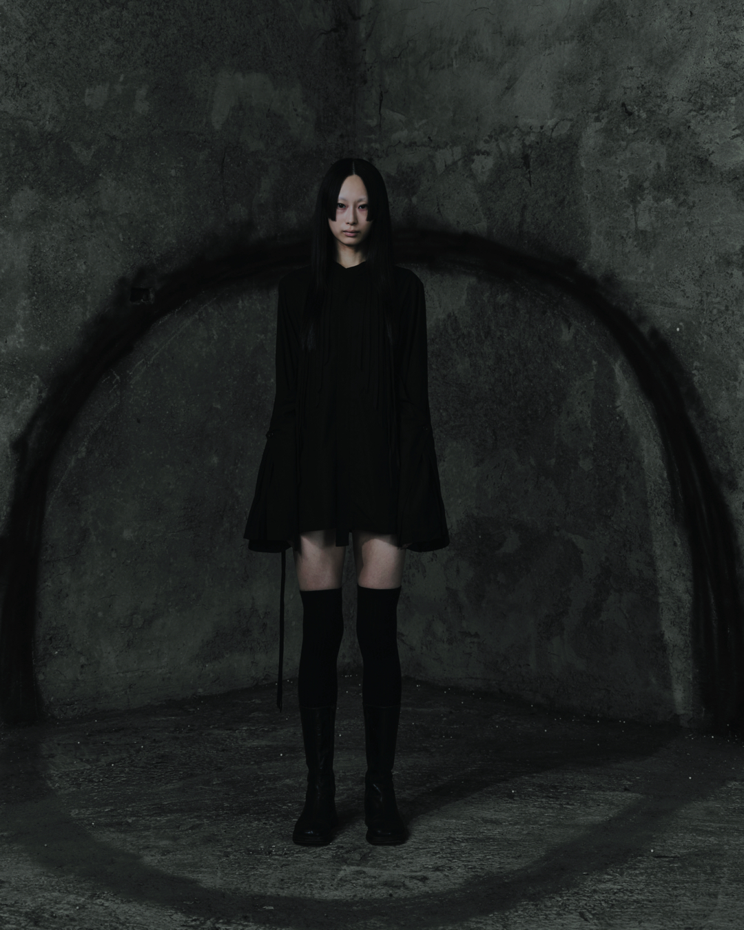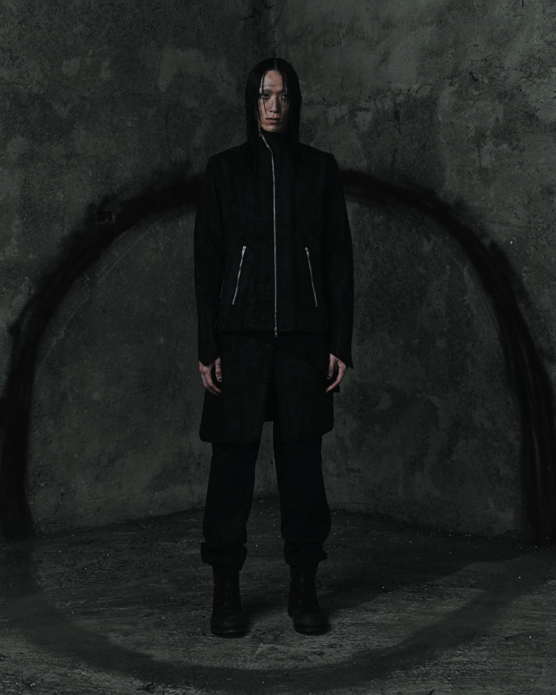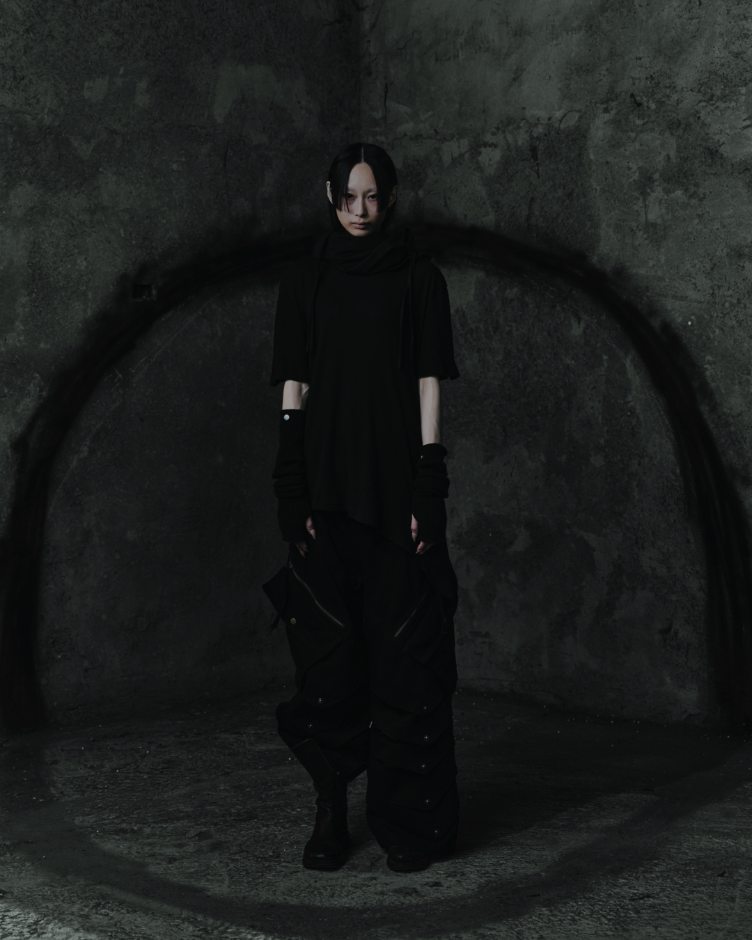 Its garments are conceived for those who refuse to be softened by the world, those who stand through imbalance and pressure, those whose presence is already a language. Protection here is a mechanism of endurance rather than aggression. It is a way of holding oneself together without harming others.