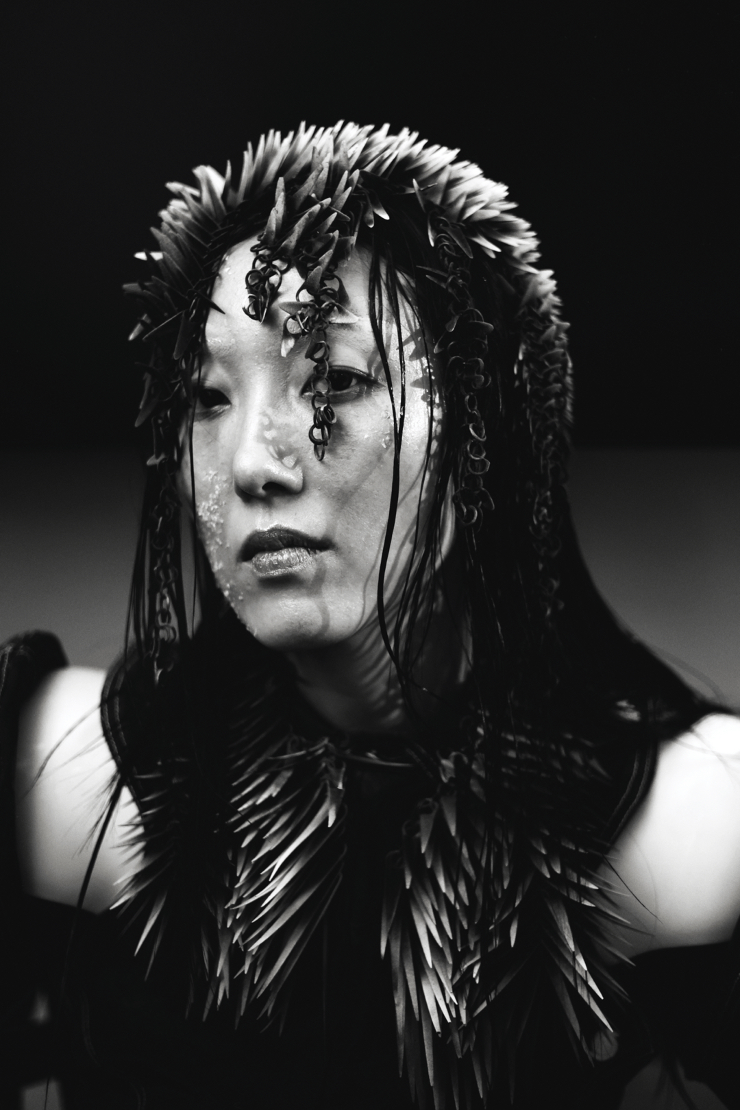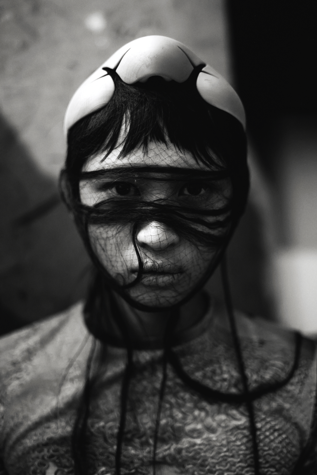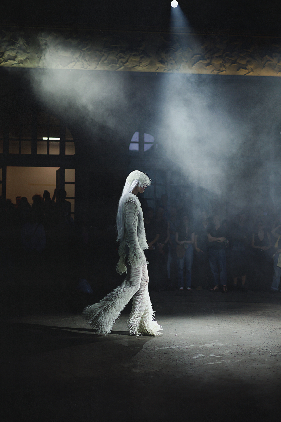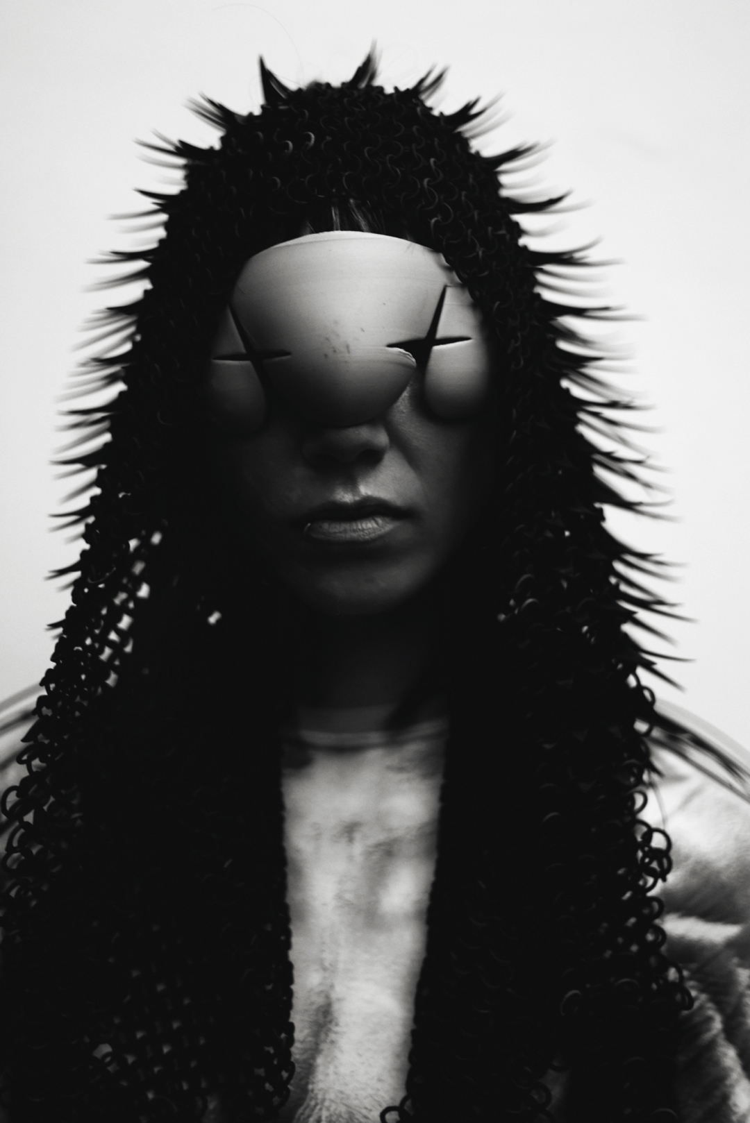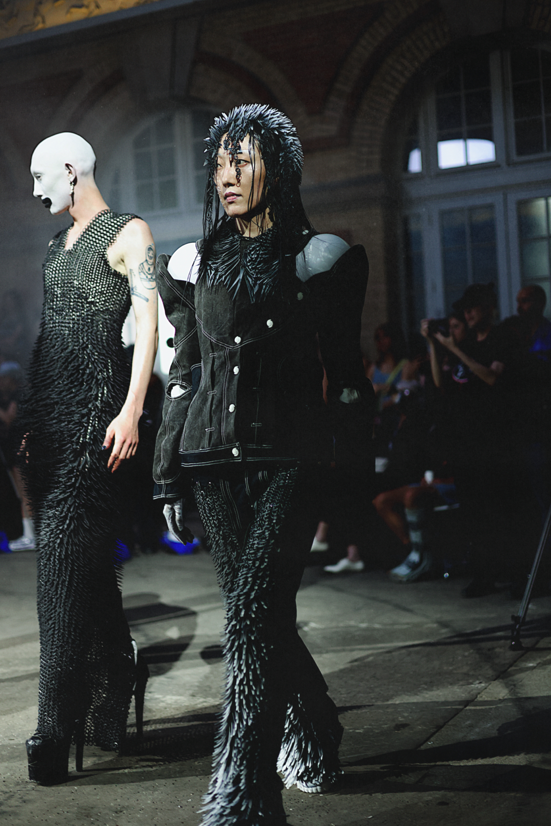 Clavelly is not a traditional designer, nor does he aspire to be one. His garments begin as digital sculptures, modeled, iterated, and refined in 3D environments before being materialized through labor-intensive processes that blur the line between garment, object, and character. In “Les Fragments”, this process culminates in pieces that resemble wearable prostheses or armor, extensions of the body that suggest transformation rather than adornment. Each silhouette operates within a tension: between protection and vulnerability, presence and absence, digital and corporeal.