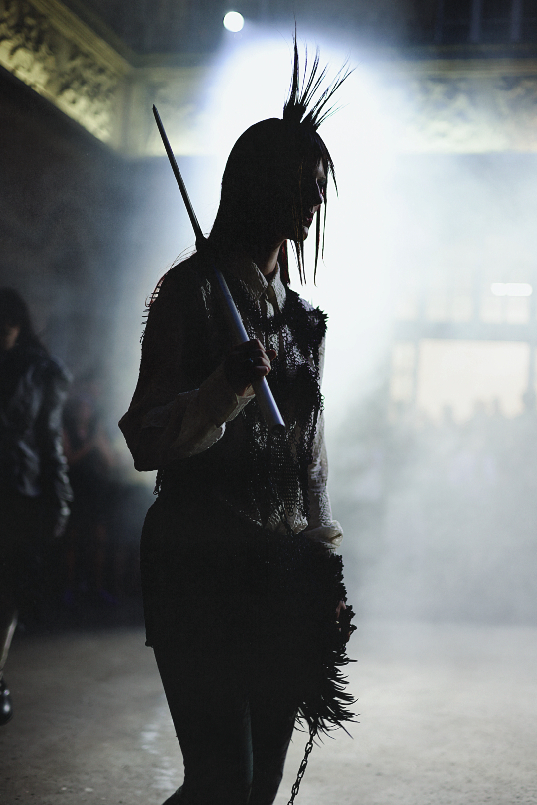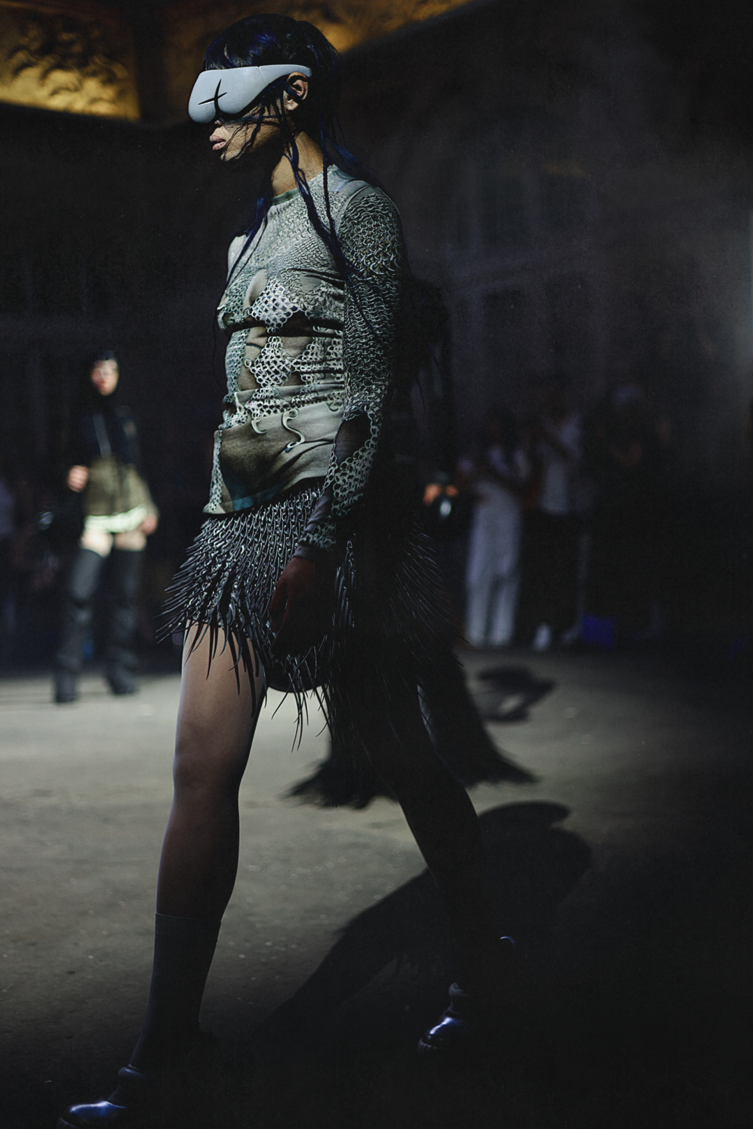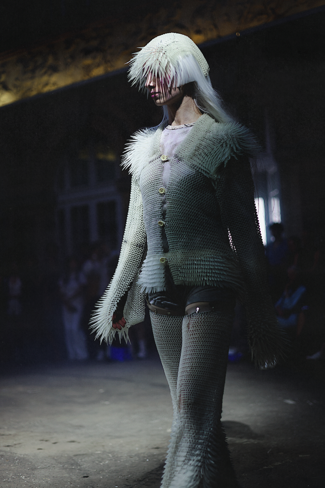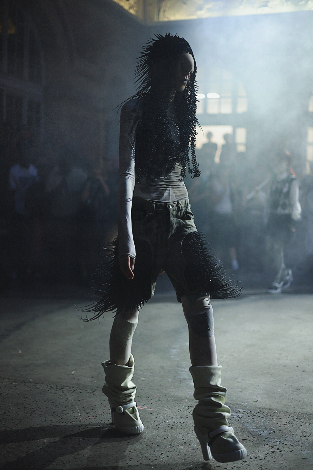 What sets “Les Fragments” apart is its commitment to world-building. The collection doesn’t follow a seasonal logic. It proposes a narrative. Influenced by medieval fantasy, video games like Dark Souls and Bloodborne, and a visual language steeped in speculative fiction, Clavelly constructs his own mythology, one in which the garment is a relic of an alternate reality. This storytelling is not decorative. It is structural. The garments speak in fragments, as the title suggests, but they belong to a coherent, self-contained universe.