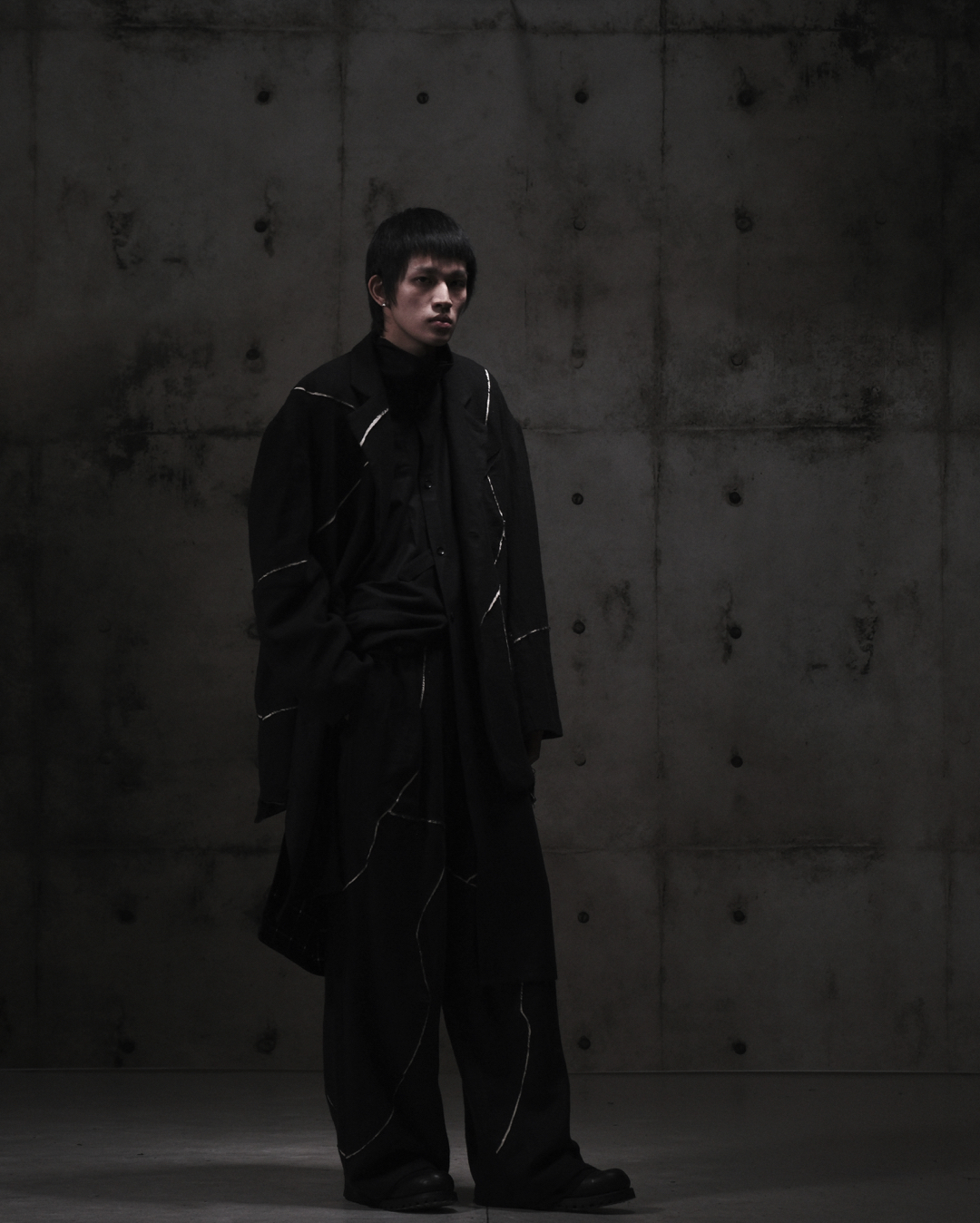 Void Studio’s Fall/Winter 2026 collection, “Dissonance”, is grounded in a sustained state of tension. Informed by the designer’s background in bespoke tailoring, the collection reflects a long exposure to precision, discipline, and repetition, and the psychological fatigue that follows. Tailoring is treated as a system under strain, its rules loosened through splitting, detachment, and incompletion. The collection occupies an unresolved space where garments resist closure and stability remains uncertain, framing contradiction as a condition to live with, not to resolve.