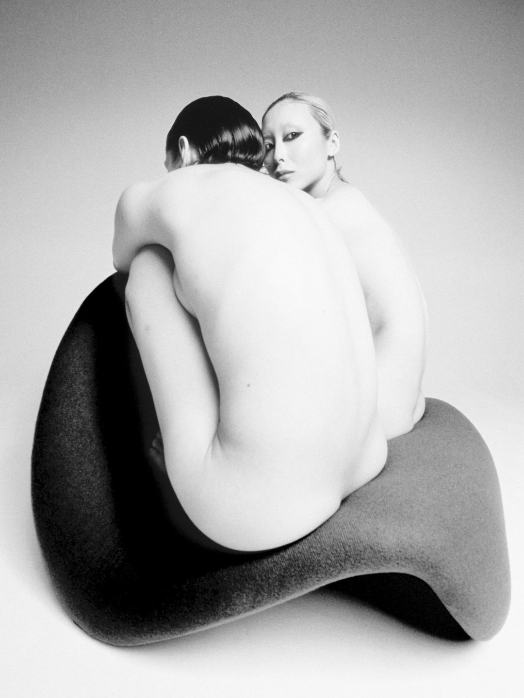 This special edition also originates from Voyeur Voyeur founder Kat Qiu’s participation in the first Paulin, Paulin, Paulin campaign, Industrial Icon | Pierre Paulin, photographed by Thibaut Grevet. Extending this initial dialogue, the collaboration continues through both the creation of this exclusive piece and a photographic series featuring Qiu in interaction with the “Tongue Chair”.