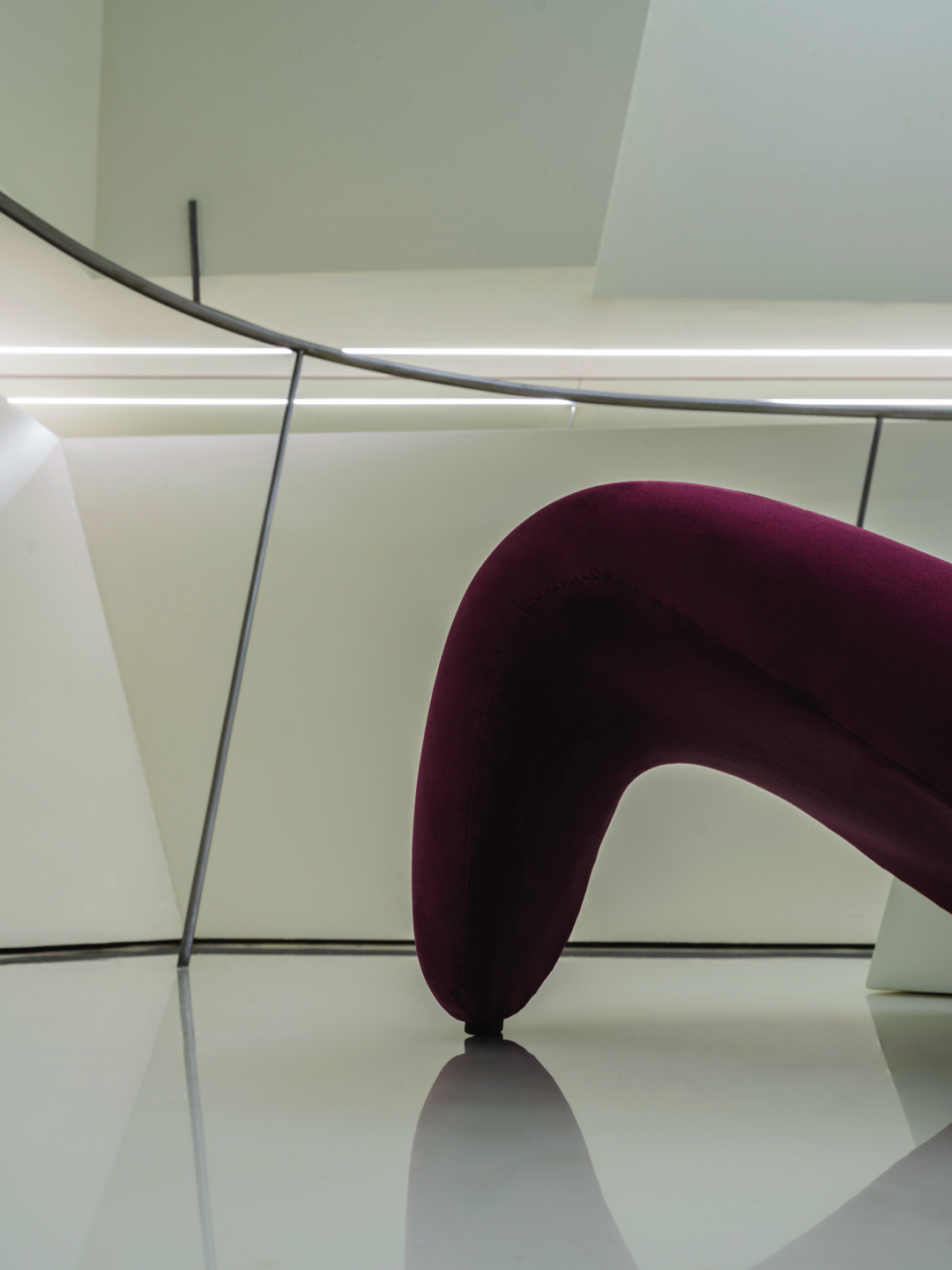 For Voyeur Voyeur, Paulin, Paulin, Paulin has developed a special edition upholstered in Toray’s Ultrasuede fabric in U2828L Burgundy, establishing a direct connection between the chair and the store’s architecture. The material is already embedded in Voyeur Voyeur’s identity, used in changing rooms and staff uniforms, forming part of its visual language. Upholstering the Tongue Chair in Ultrasuede translates the store’s spatial identity into a collectible design object, creating a dialogue between furniture, fashion, and space.