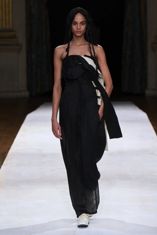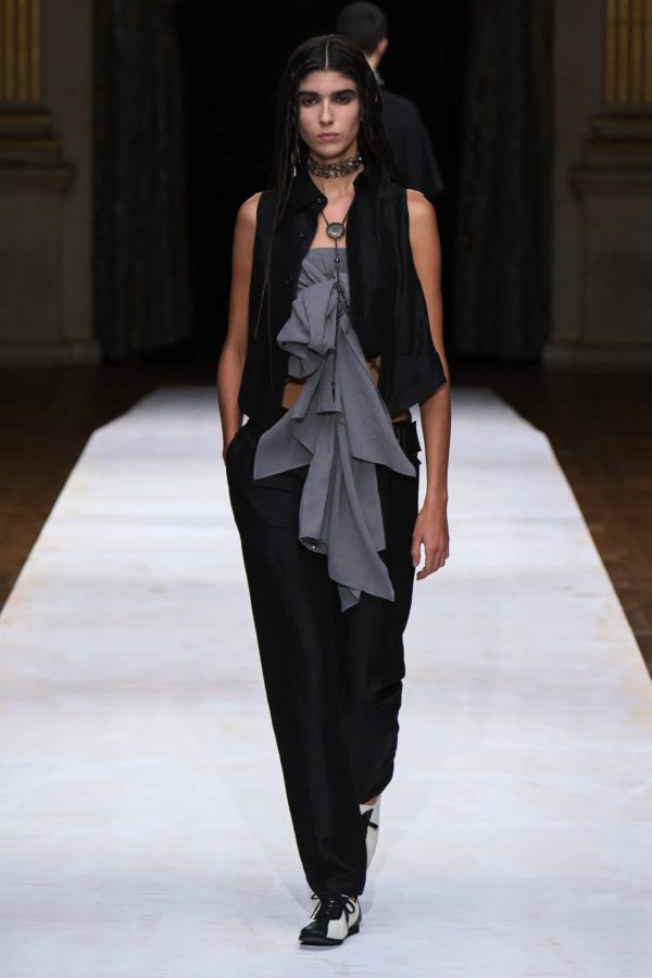 The runway soundtrack, featuring a cover of The Beatles’s “Come Together,” aptly underlined Yamamoto’s message of iterating upon established sounds to create something original, mirroring his approach to fashion. The collection showcased the evolving nuances in Yamamoto’s work, revealing his tireless dedication to innovation.
