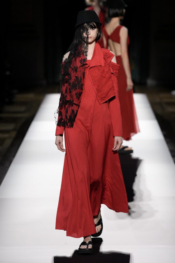 The finale—a series of loosely structured red looks—brought the show to a somewhat abrupt close, like a statement left deliberately unfinished. Architect Jean Nouvel, in attendance, described the collection as embodying a beauty that was “at once sober and styled.” As is often the case with Yamamoto’s work, interpretation is left to the viewer, but the admiration was universal. The prolonged applause as the designer took his bow, accompanied by Kolesnikov, reflected a deep, collective appreciation for his continued innovation and artistic rigor. In this collection, Yamamoto once again proves that the space between fragility and strength, deconstruction and craftsmanship, is where his most powerful work resides.