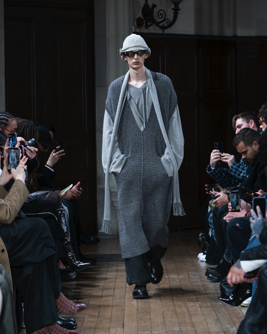 A palette of warm browns, softened greys, deep grey-blues, and muted yellow hues moves across wool, cashmere, hemp, linen, and silk, grounding the collection in tactile depth. Here, craft and function meet in measured dialogue, each detail reinforcing a quiet but persistent material presence.