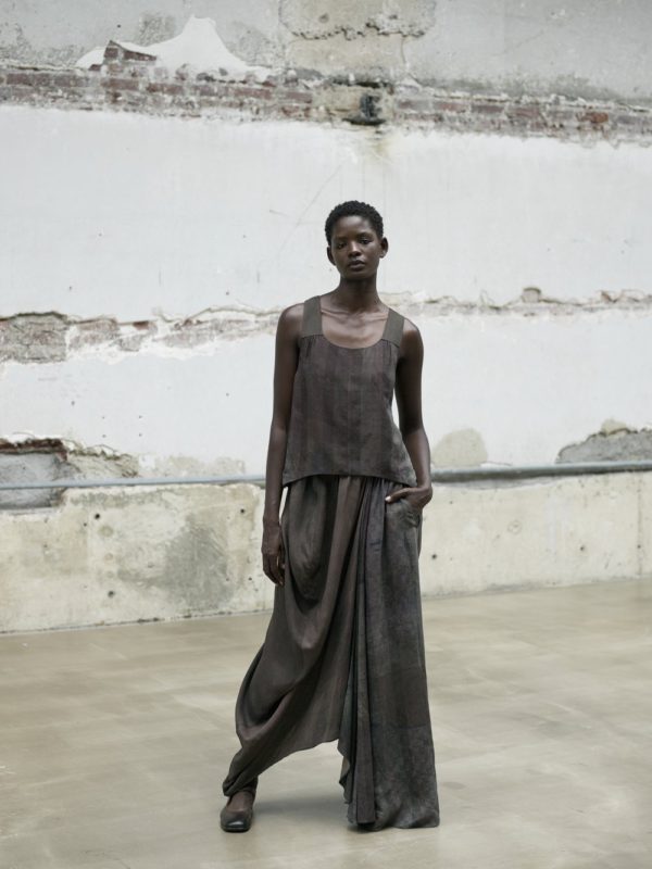 This season, the materials are imbued with spontaneity, with a fascinating contrast between the men’s and women’s creations in the collection. Linen, hemp, and ramie for men evoke simplicity, while silk and viscose highlight drapery for women.