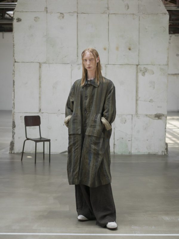 New colors enrich the palette of this collection. Signature shades of earthy brown and olive green are accompanied by faded blue inspired by Chinese workwear from the 1940s, with a beautiful patina caused by years of use.